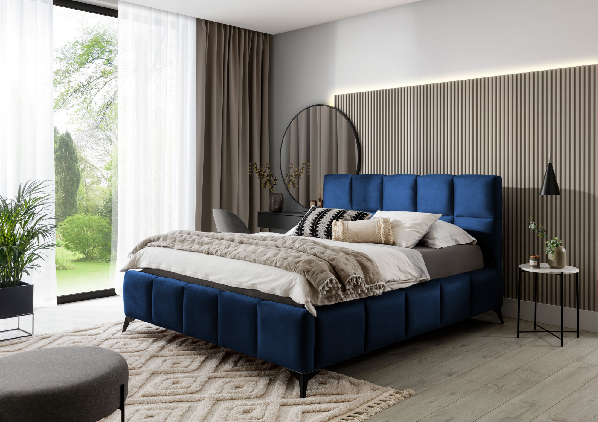 The Mist bed is a combination of modern design and glamour style, which brings a touch of elegance to any bedroom. The headrest has a soft foam filling covered with high-quality upholstery. Quilting, which decorates the Mist bed, adds style and character, and brings an air of modernity.The furniture is available in three widths of sleeping surface: 140, 160, 180 x 200 centimeters. This makes it easier to adjust the bed to the conditions in the apartment. Black steel legs with a length of as much as 13.5 centimeters make the bed give the impression of floating above the ground, which further optically enlarges the room in which the Mist bed will be placed. In addition, the furniture is also equipped with a bedding container, which is a very good solution for small spaces and allows you to keep the bedroom tidy.