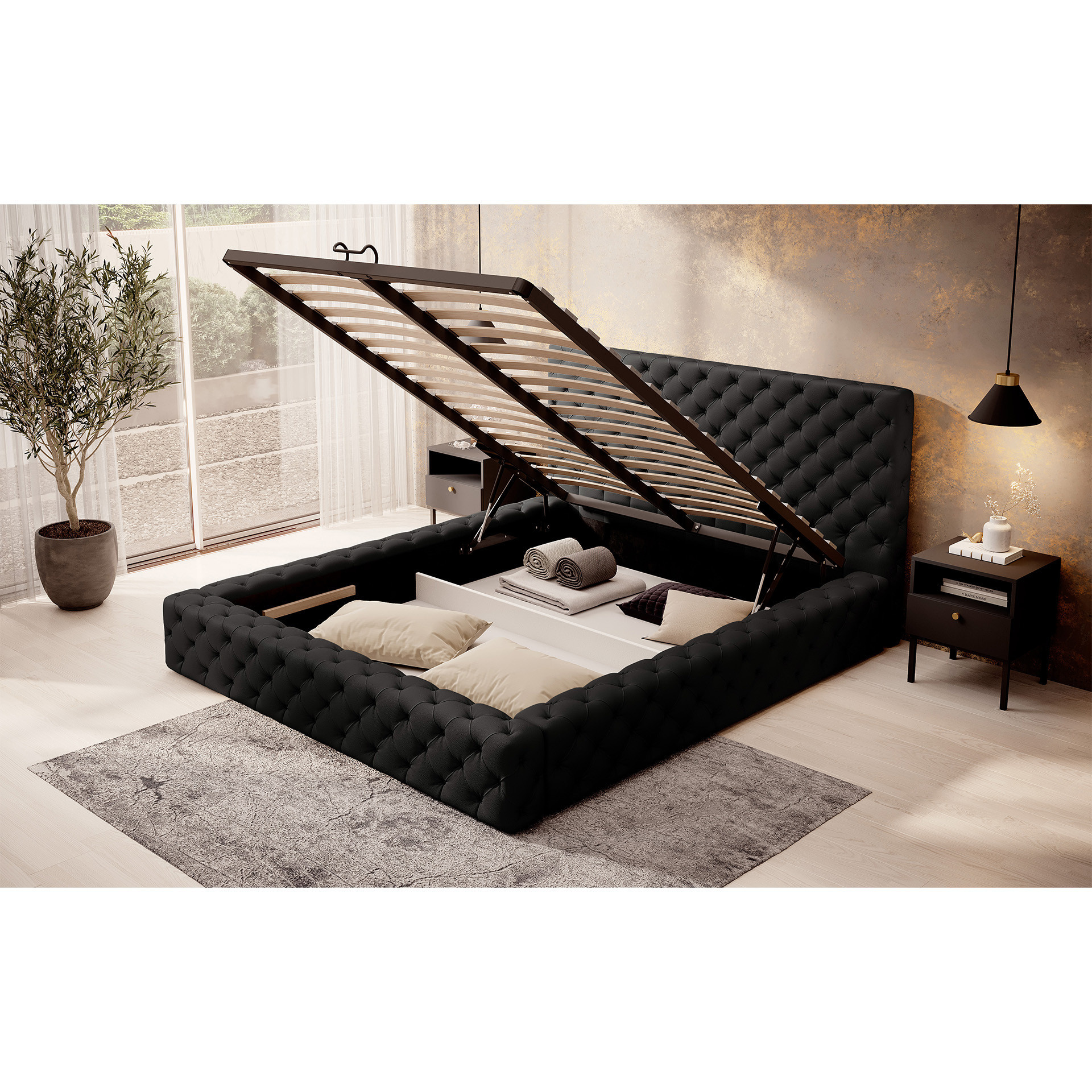The Princce bed is a unique piece of furniture that combines style, functionality, and comfort. Providing an excellent place to rest, the Princce bed is an ideal choice for any bedroom. Made of durable metal frame, the Princce bed ensures not only solidity but also long-lasting durability. The seat height is 30 cm, and the backrest reaches 87 cm, providing comfort during relaxation. The bed includes a practical storage compartment for bedding, offering a convenient solution for storing additional items. The bed legs are made of black furniture glides, which not only give it a modern look but also facilitate movement. The set includes 36 slats that provide proper support for the mattress. However, it's important to note that the mattress is not included in the set, allowing freedom to choose the right mattress according to personal preferences. The Princce bed is available in different sizes, allowing it to be adjusted to individual needs and the size of the bedroom. Additionally, the bed can be adorned with decorative tufting, adding elegance and a unique character to it. In summary, the Princce bed is an excellent combination of style, functionality, and comfort.