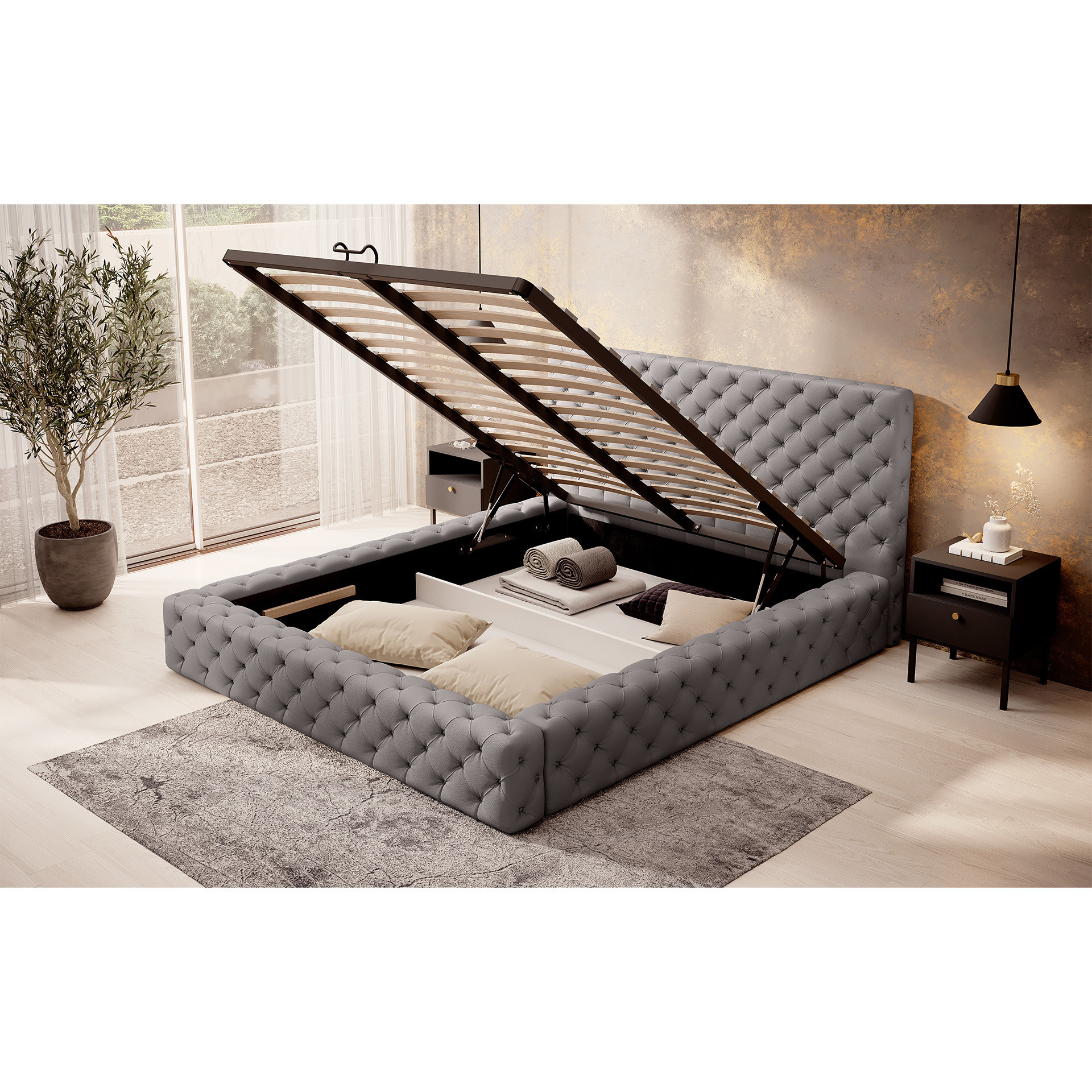 The Princce bed is a unique piece of furniture that combines style, functionality, and comfort. Providing an excellent place to rest, the Princce bed is an ideal choice for any bedroom. Made of durable metal frame, the Princce bed ensures not only solidity but also long-lasting durability. The seat height is 30 cm, and the backrest reaches 87 cm, providing comfort during relaxation. The bed includes a practical storage compartment for bedding, offering a convenient solution for storing additional items. The bed legs are made of black furniture glides, which not only give it a modern look but also facilitate movement. The set includes 36 slats that provide proper support for the mattress. However, it's important to note that the mattress is not included in the set, allowing freedom to choose the right mattress according to personal preferences. The Princce bed is available in different sizes, allowing it to be adjusted to individual needs and the size of the bedroom. Additionally, the bed can be adorned with decorative tufting, adding elegance and a unique character to it. In summary, the Princce bed is an excellent combination of style, functionality, and comfort.