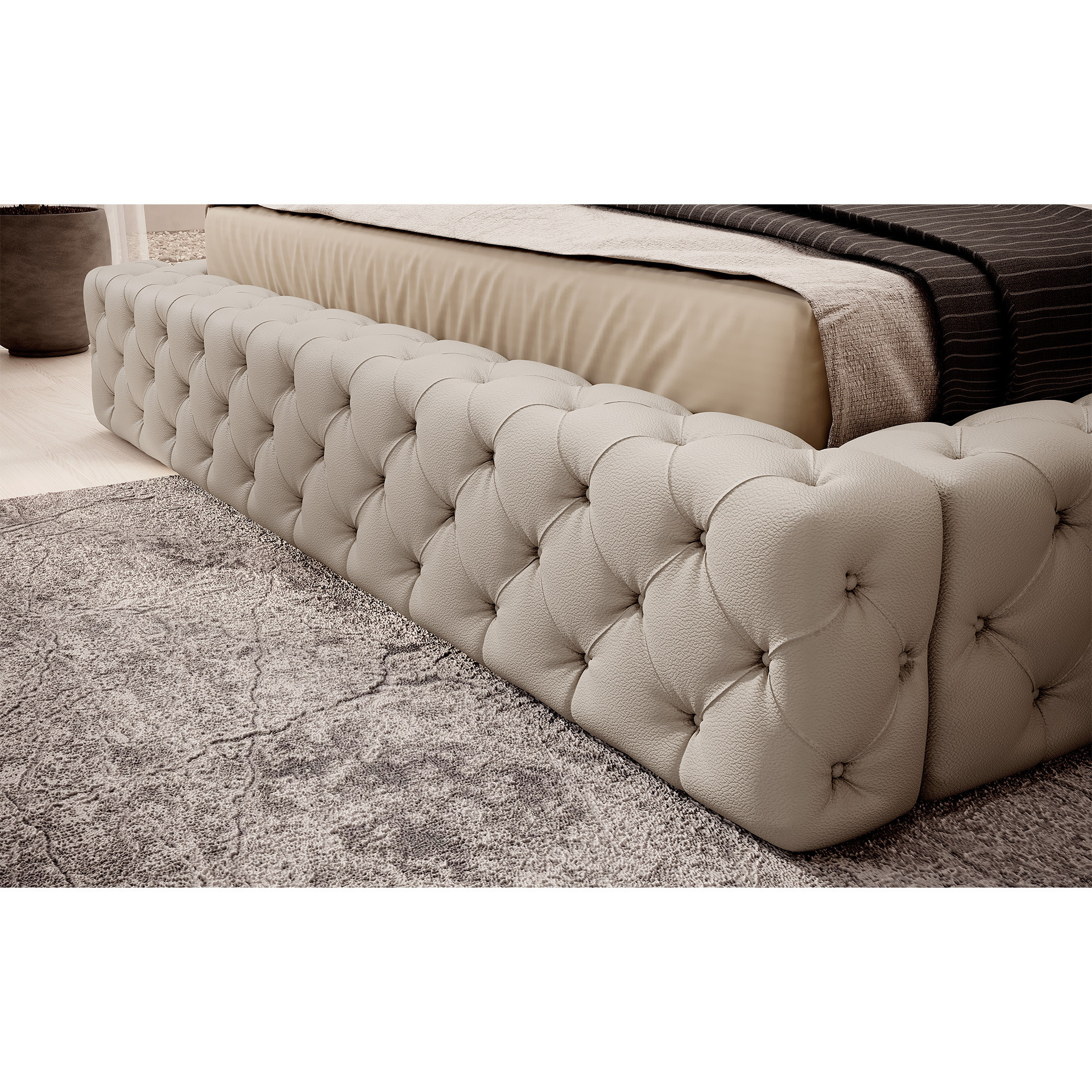 The Princce bed is a unique piece of furniture that combines style, functionality, and comfort. Providing an excellent place to rest, the Princce bed is an ideal choice for any bedroom. Made of durable metal frame, the Princce bed ensures not only solidity but also long-lasting durability. The seat height is 30 cm, and the backrest reaches 87 cm, providing comfort during relaxation. The bed includes a practical storage compartment for bedding, offering a convenient solution for storing additional items. The bed legs are made of black furniture glides, which not only give it a modern look but also facilitate movement. The set includes 36 slats that provide proper support for the mattress. However, it's important to note that the mattress is not included in the set, allowing freedom to choose the right mattress according to personal preferences. The Princce bed is available in different sizes, allowing it to be adjusted to individual needs and the size of the bedroom. Additionally, the bed can be adorned with decorative tufting, adding elegance and a unique character to it. In summary, the Princce bed is an excellent combination of style, functionality, and comfort.