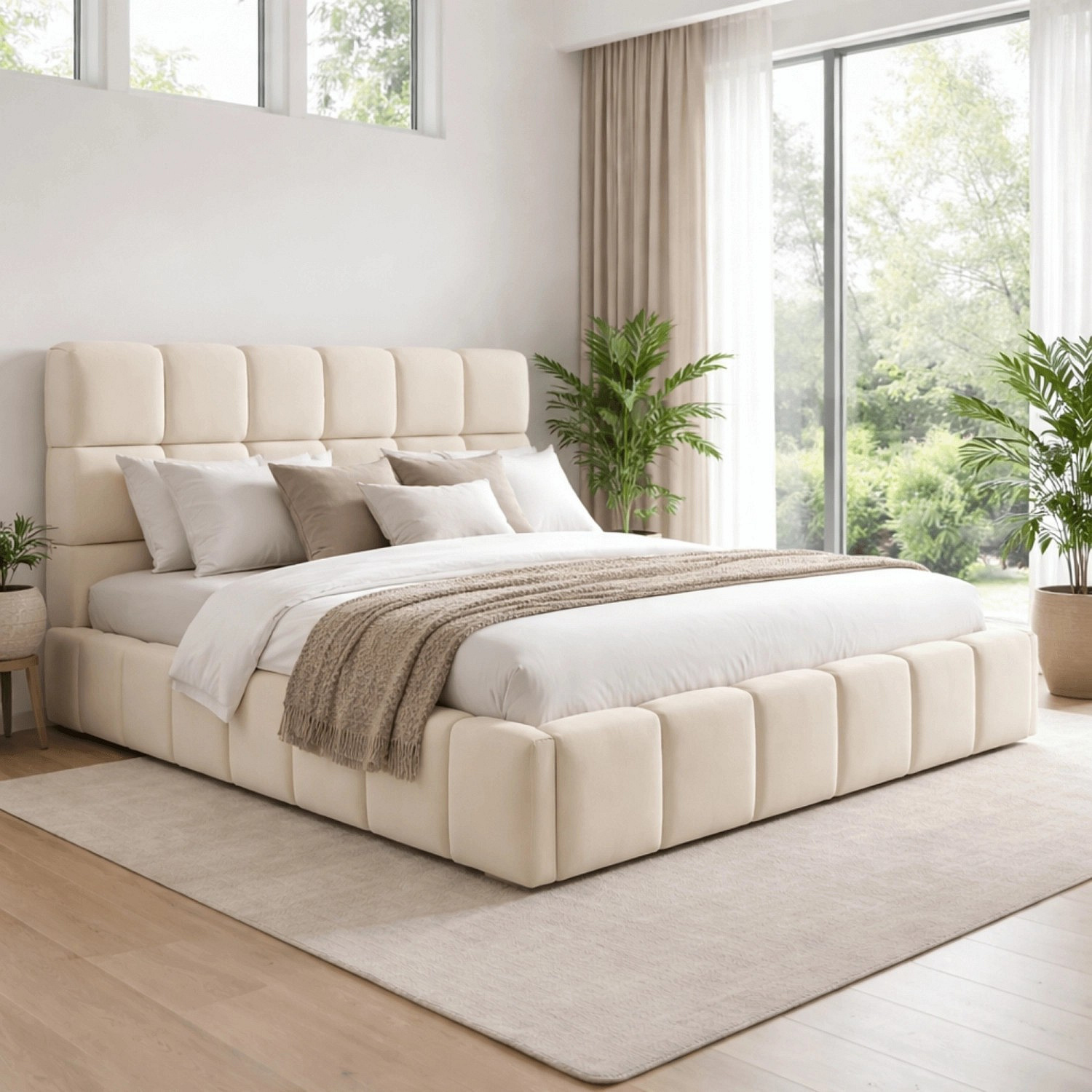Łóżko 160x200 MURCJA z Pojemnikiem Kremowe Welurowe
