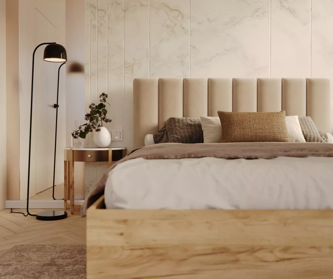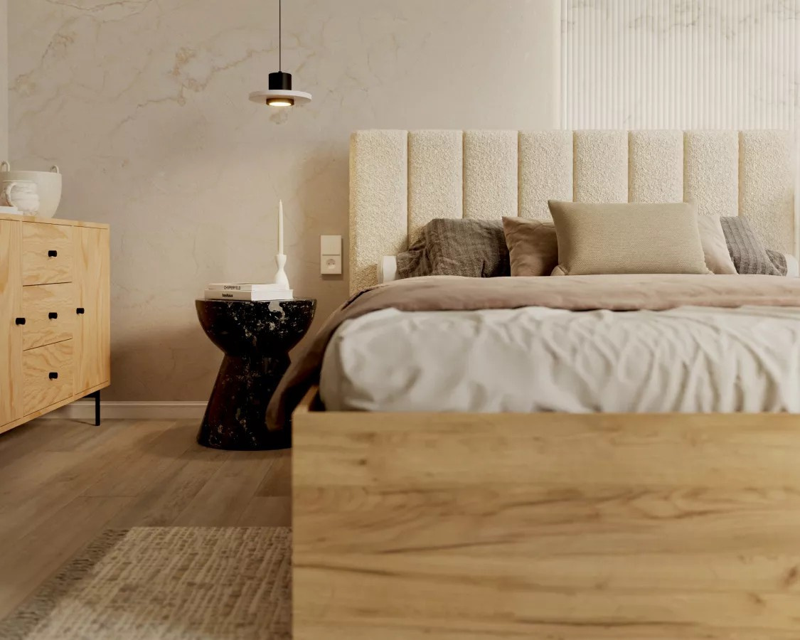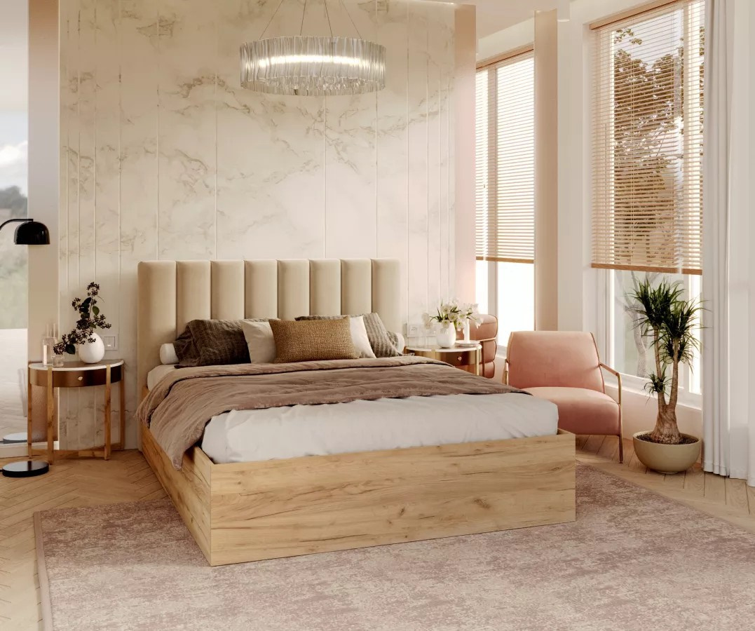 Łóżko tapicerowane GRENADA – połączenie stylu, komfortu i funkcjonalności Sypialnia to serce każdego domu, miejsce, w którym odpoczywamy i regenerujemy siły. Dlatego tak ważne jest, aby była urządzona nie tylko stylowo, ale przede wszystkim komfortowo. Łóżko z tapicerowanym zagłówkiem GRENADA to doskonałe rozwiązanie dla tych, którzy cenią sobie połączenie elegancji, funkcjonalności i wygody. Jego klasyczny design z nutą nowoczesności sprawi, że każda sypialnia zyska wyjątkowy charakter, a codzienny odpoczynek stanie się czystą przyjemnością. Łóżko małżeńskie GRENADA – komfort i praktyczność w jednym Model GRENADA to nie tylko estetyka, ale również praktyczne rozwiązania. Dzięki zastosowaniu podnoszonego stelaża, łóżko skrywa przestronny pojemnik na pościel, który zapewnia dodatkowe miejsce na przechowywanie. Głęboki schowek, przylegający bezpośrednio do podłogi, pozwala na przechowywanie nawet ciężkich przedmiotów bez obaw o jego wytrzymałość. Łóżko GRENADA to zatem idealne połączenie wygody i funkcjonalności – miejsce do spania, które jednocześnie spełnia rolę pojemnego mebla. Solidna konstrukcja – jakość na lata Wytrzymałość i stabilność to kluczowe cechy modelu GRENADA. Konstrukcja łóżka została wykonana z wysokiej jakości płyty meblowej, odpornej na odkształcenia i uszkodzenia. Wkręty o dużej średnicy oraz dodatkowe wzmocnienia zapewniają solidność i brak skrzypienia, nawet podczas intensywnego użytkowania. Dzięki temu łóżko będzie służyć przez wiele lat, zapewniając komfort każdej nocy. Elegancja i komfort – tapicerowany zagłówek GRENADA Niepowtarzalny styl łóżka GRENADA dopełnia tapicerowany zagłówek, pokryty wysokiej jakości tkaniną welurową TRINITY. Materiał ten wyróżnia się delikatnym połyskiem, aksamitną strukturą oraz wyjątkową odpornością na ścieranie i mechacenie. To idealne rozwiązanie do sypialni, które dodaje wnętrzu elegancji i klasy. Zagłówek nie tylko zachwyca wyglądem, ale także zapewnia wygodne oparcie podczas wieczornego czytania lub oglądania filmów. Skrzynia łóżka, wykonana z płyty MDF o naturalnym wyglądzie drewna, dopełnia całości, nadając meblowi wyjątkowy charakter. Połączenie tapicerowanego zagłówka i skrzyni o teksturze drewna z pewnością wyróżnia się na tle większości łóżek z tkanina obiciową lub wykonanych z całości z płyty MDF. GRENADA – łóżko stworzone z myślą o Twoim komforcie Łóżko do sypialni GRENADA to idealny wybór dla osób, które pragną połączyć estetykę z funkcjonalnością. Jego ponadczasowy design, solidna konstrukcja i praktyczne rozwiązania sprawiają, że to mebel, który spełni oczekiwania nawet najbardziej wymagających użytkowników. Zaproś do swojej sypialni luksus i wygodę, wybierając model GRENADA! CHARAKTERYSTYKA ŁÓŻKA GRENADA: Konstrukcja z wysokiej jakości płyty meblowej charakteryzującej się wytrzymałością oraz łatwością w utrzymaniu czystości Obicie z zagłówka tkaniny Trinity - nowoczesny wygląd z dekoracyjnymi przeszyciami Podnoszony stelaż metalowy - Stelaż wspierany jest mechanizmem podnoszenia - dwa siłowniki gazowe. Posiada brzozowe sprężynujące listwy Prosty zagłówek - łóżko przylega całym wezgłowiem do ściany, nie pozostawia z tyłu pustej przestrzeni Pojemnik na pościel - znajduje się pod całym łóżkiem. Rzeczy pozostają w ukryciu Do samodzielnego montażu - zalecamy składanie łóżka w dwie osoby Elementy w łóżku połączone są za pomocą złączy meblowych mimośrodowych, charakteryzujących się połączeniem, którego nie widać z zewnątrz mebla Zastosowane łączenie usztywniające sprawia, że elementy łóżka są ze sobą dobrze połączone Prosty i szybki montaż. Do każdego łóżka dołączamy zestaw montażowy oraz instrukcję