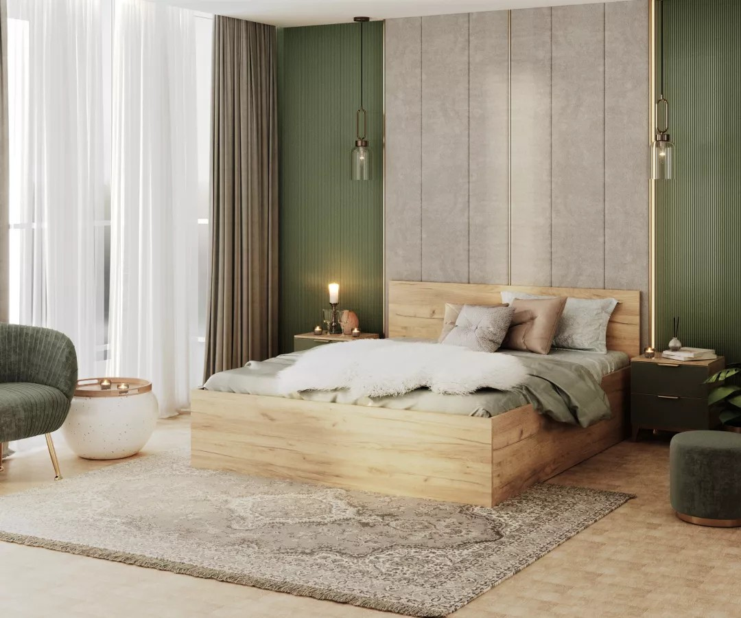 Łóżko małżeńskie HAVANA Łóżko parterowe HAVANA to trwały oraz solidny mebel inspirowany stylem skandynawskim. Posiada metalowy, podnoszony stelaż ze sprężynującymi listwami brzozowymi. Każda listwa umieszczona jest w plastikowej kieszonce, dzięki czemu łóżko nie skrzypi. Stelaż wspierany jest mechanizmem podnoszenia, który posiada siłowniki gazowe.