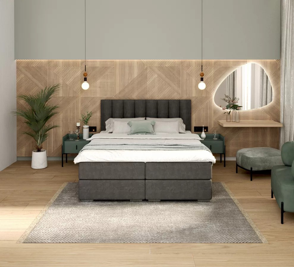Łóżko kontynentalne LINCOLN Stwórz idealny klimat w swojej sypialni z tapicerowanym łóżkiem kontynentalnym LINCOLN. Ten elegancki mebel jest doskonałym połączeniem stylu i wygody, które idealnie dopasuje się do każdego wnętrza. Tapicerowany zagłówek dodaje mu szyku i elegancji. To detale sprawiają, że LINCOLN wyróżnia się spośród innych łóżek. Prosty design gwarantuje, że będzie harmonijnie współgrać z każdym wystrojem sypialni, niezależnie od jej stylu.
