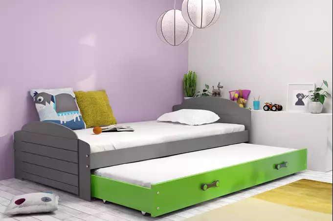 ŁÓŻKO MŁODZIEŻOWE LILI PODWÓJNE RAMA GRAFIT SZUFLADA ZIELONY 90 X 200 KPL