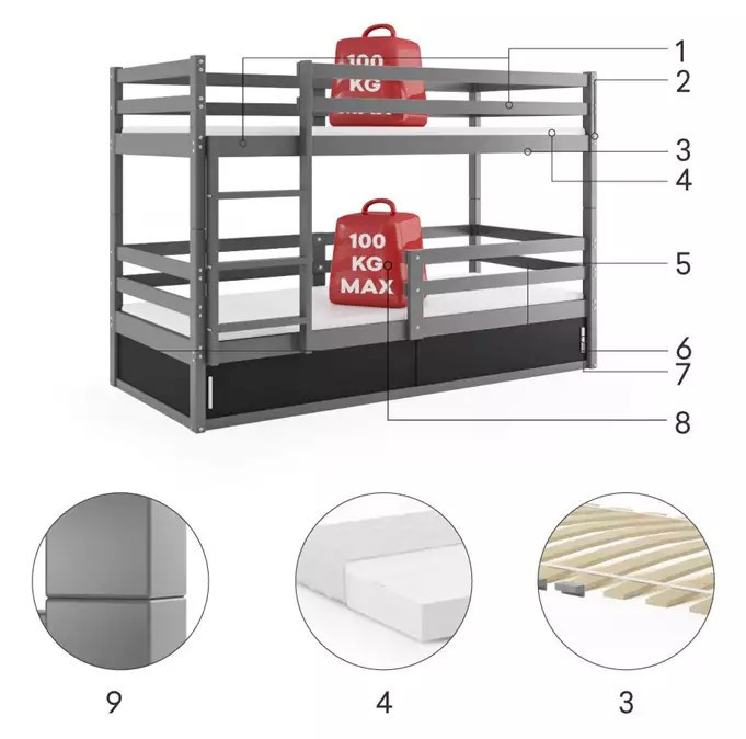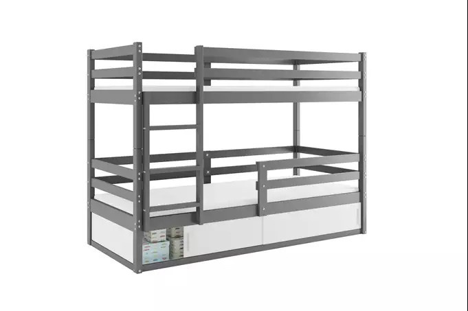 Łóżko młodzieżowe, piętrowe Bingo, z grafitową ramą, bez materacy 80 x 190
