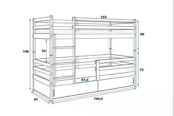 | Ágy a fekvőhelyek száma szerint | 2 gyermek számára |