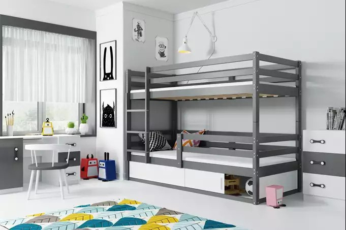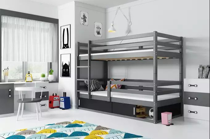 Łóżko młodzieżowe, piętrowe Bingo, z grafitową ramą, z materacami 80 x 190