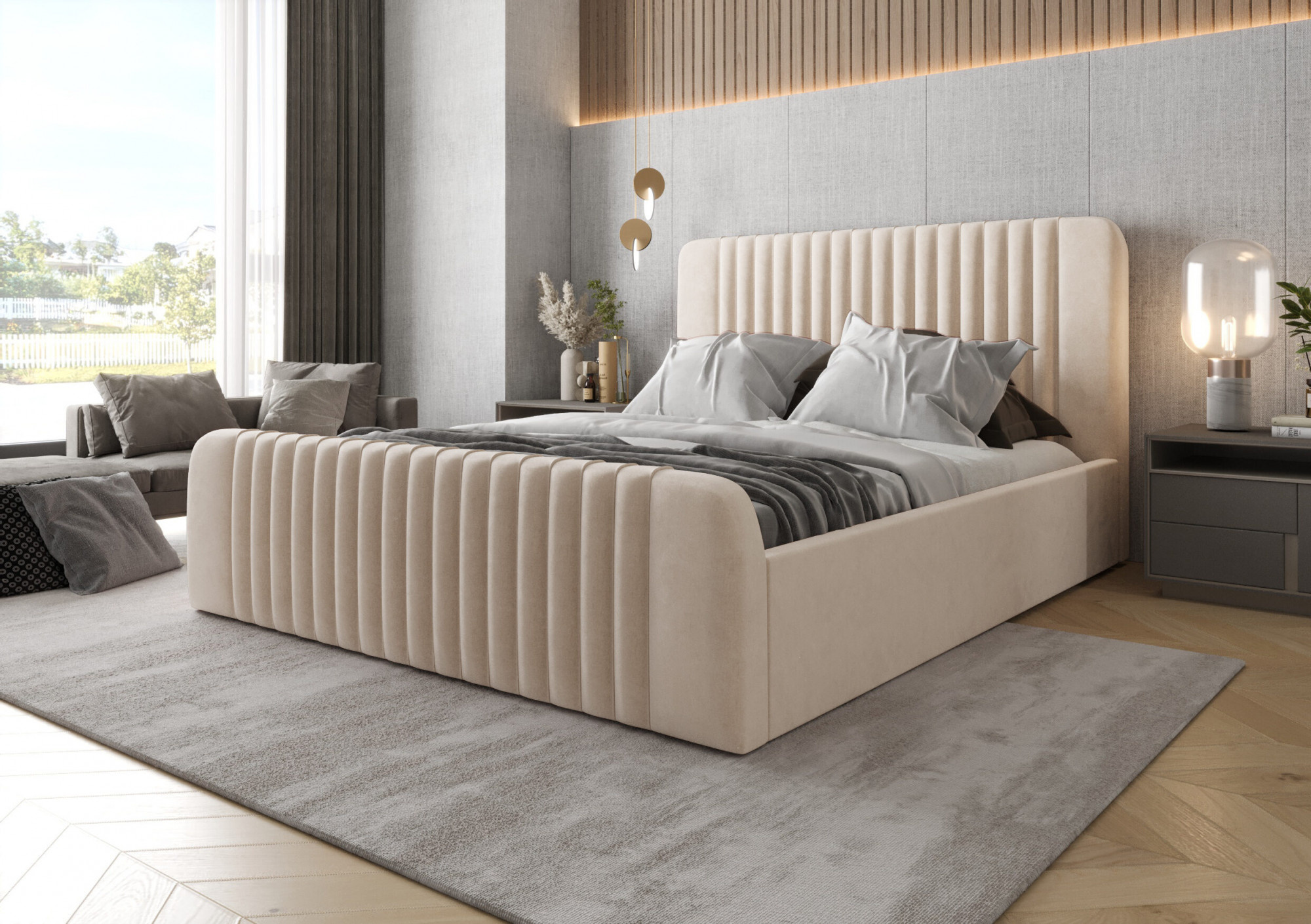 Łóżko Modena z pojemnikiem – elegancja, komfort i funkcjonalność Łóżko Modena z pojemnikiem to idealne rozwiązanie dla osób, które cenią komfort, elegancję i praktyczne rozwiązania w swojej sypialni. Ten model łączy klasykę z nowoczesnym designem, tworząc przestrzeń sprzyjającą relaksowi i odpoczynkowi. Wysokiej jakości materiały zapewniają trwałość i stabilność przez wiele lat. Staranne wykończenie sprawia, że łóżko prezentuje się wyjątkowo w każdym wnętrzu. Model Modena został wyposażony w pojemny schowek na pościel, który umożliwia wygodne przechowywanie kołder, poduszek czy sezonowych tekstyliów. Mechanizm z siłownikami gazowymi ułatwia otwieranie i zamykanie pojemnika, dzięki czemu utrzymanie porządku w sypialni staje się szybkie i proste. W zależności od potrzeb, łóżko można zamówić ze stelażem drewnianym lub metalowym. Oba warianty gwarantują solidne podparcie dla materaca i komfortowy sen. Dodatkowo front łóżka jest nieco wyższy od boków, co zapobiega przesuwaniu się kołdry i utrzymuje przykrycie na miejscu przez całą noc.</span> Sen jest niezwykle ważny dla zdrowia i dobrego samopoczucia – spędzamy na nim średnio 20–25 lat życia. Dlatego warto wybrać łóżko Modena z pojemnikiem, które łączy wygodę, funkcjonalność i elegancję. Łóżko Modena dostępne jest w kilku rozmiarach: 158 cm (pod materac 140x200), 178 cm (160x200), 198 cm (180x200) i 218 cm (200x200). Przejdź do kategorii materacy i znajdź ten najbardziej odpowiedni dla siebie. W naszej ofercie znajdują się materace do spania o różnej twardości i z wieloma właściwościami wpływającymi na poprawę jakości snu. Intuicyjna konstrukcja pozwala na szybki i prosty montaż. Natomiast pojemnik i solidny stelaż sprawiają, że Modena jest połączeniem elegancji z funkcjonalnością, tworząc komfortową przestrzeń do spania i odpoczynku dla Ciebie i Twoich bliskich. Dostępne tkaniny Kolekcję MCV stworzono w jakości Cleanaboo, z myślą o najwyższym komforcie użytkowania. Co to oznacza? Oznacza to więc, że zastosowano technologię polegającą na ograniczeniu wchłaniania wody. Technologia ta polega na tym, że każdy rozlany płyn formuje się w krople i nie wnika do wnętrza tkaniny. Ponadto kolekcja MCV charakteryzuje się właściwościami trudnopalnymi więc jest bardzo mile widziana w hotelach lub innych miejscach, w których istnieje ryzyko pożaru. Właściwości trudnopalne potwierdzone zostały atestem Instytutu Włókiennictwa w Łodzi, wydanym zgodnie z normą PN-EN 1021-1:2014-12. Certyfikat ten gwarantuje, że układ tapicerski odporny jest na tlenie oraz zapłon płomieniem, którego źródłem jest tlący się papieros – jedna z najczęstszych przyczyn pożarów w domach. Czyszczenie tkaniny odbywa się przy użyciu łagodnych środków do pielęgnacji tapicerki więc nie należy prać na mokro ani też wybielać. Skład: 100 % z poliester Test Martindale: ponad 60 000 cykli. Gramatura: 300 g / m2 +- 5% Szerokość: 142 cm +- 3 cm Przesunięcie w szwie: Kategoria A, Mechacenie i Pilling: Kategoria A. Meble do samodzielnego montażu. Wszystkie meble wykonywane są pod indywidualne zamówienie. Prosimy o przemyślane zakupy. Towar nie podlega zwrotowi.