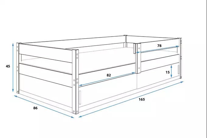 - Rama łóżka z drewna sosnowego pomalowana lakierem wodnym.