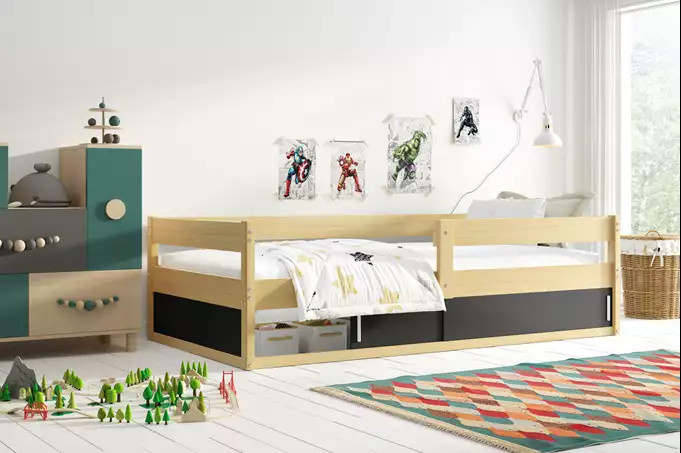 Łóżko pojedyncze dla dzieci Hugo, w kolorze sosnowym, z materacem 80 x 160