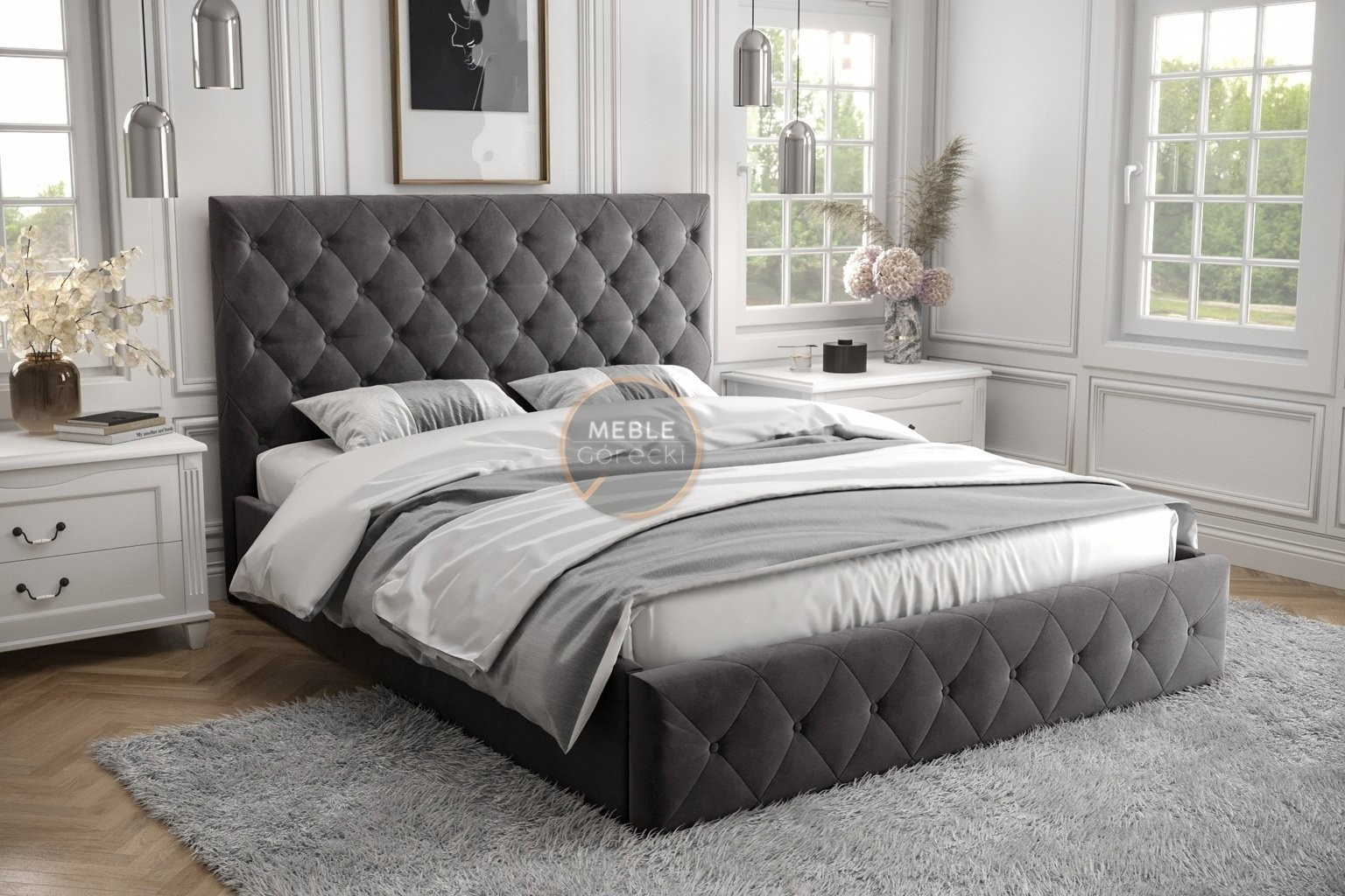ŁÓŻKO ROMA - 160x200 , Metalowy na podnośnikach gazowych , Odcienie szarości