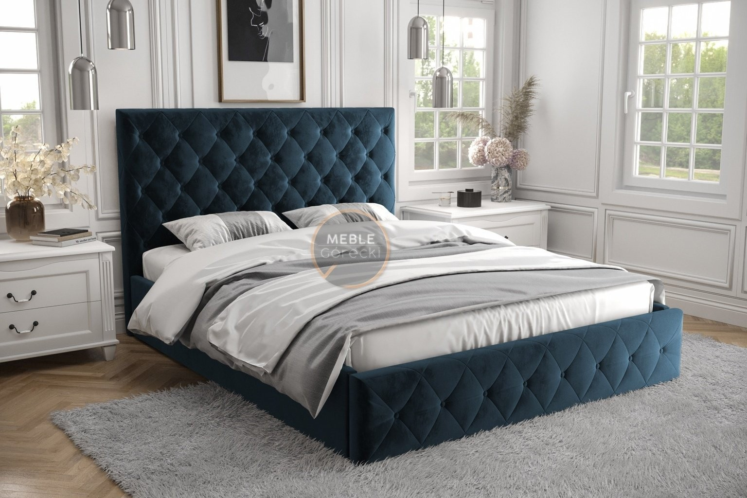 ŁÓŻKO ROMA - 180x200 , Metalowy na podnośnikach gazowych , Odcienie granatu