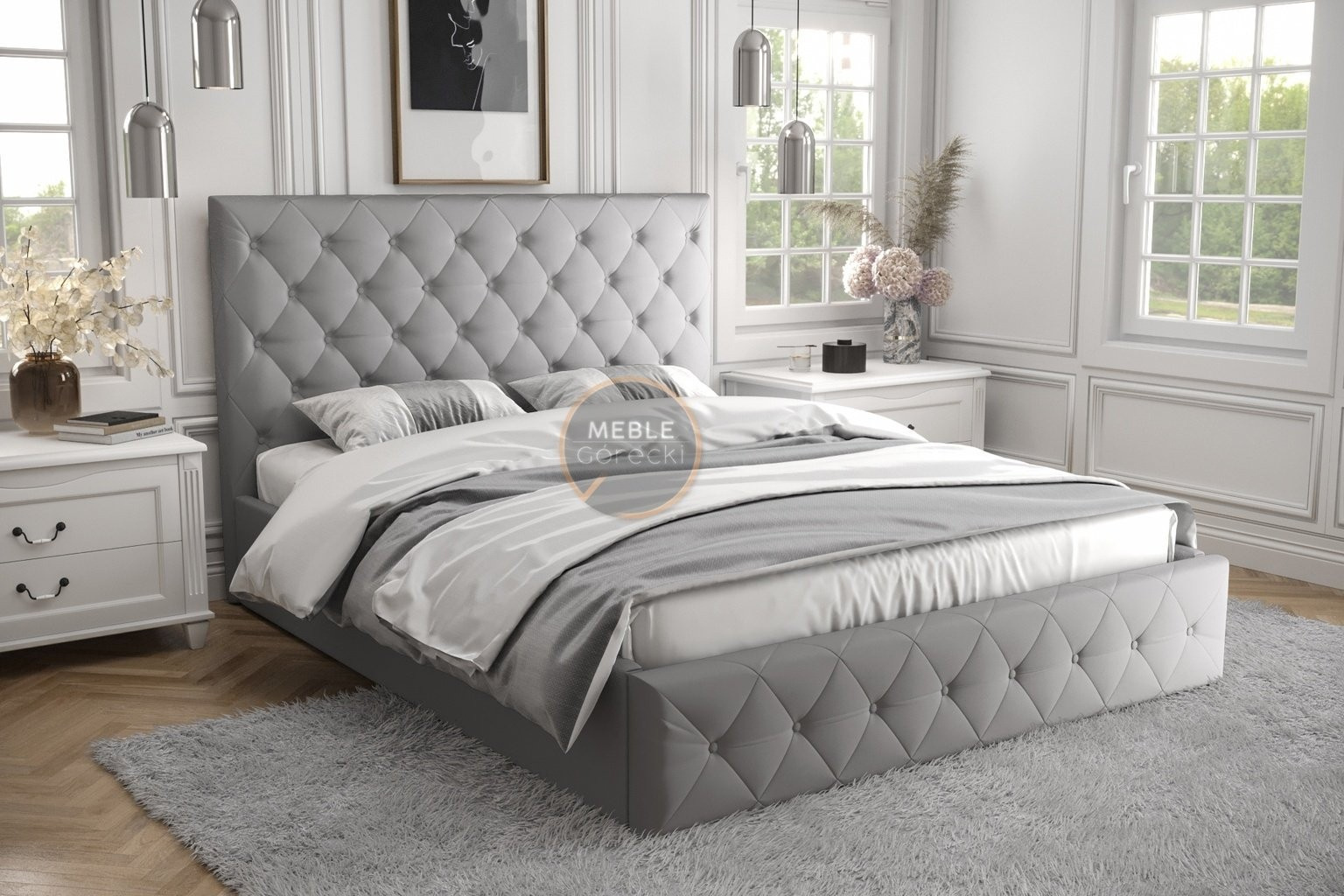 ŁÓŻKO ROMA - 180x200 , Metalowy na podnośnikach gazowych , Odcienie szarości