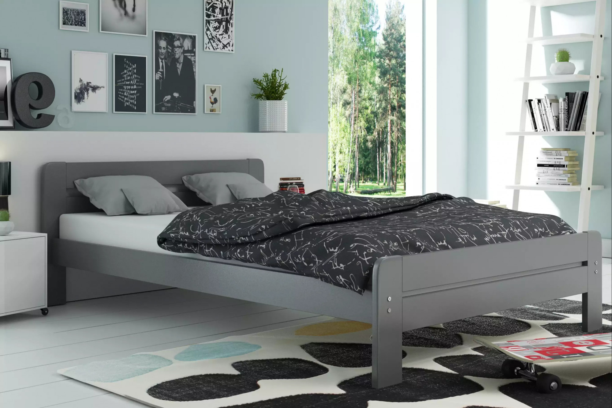 ŁÓŻKO SYPIALNIANE DALLAS GRAFIT STELAŻ DREWNIANY 120 X 200 KPL
