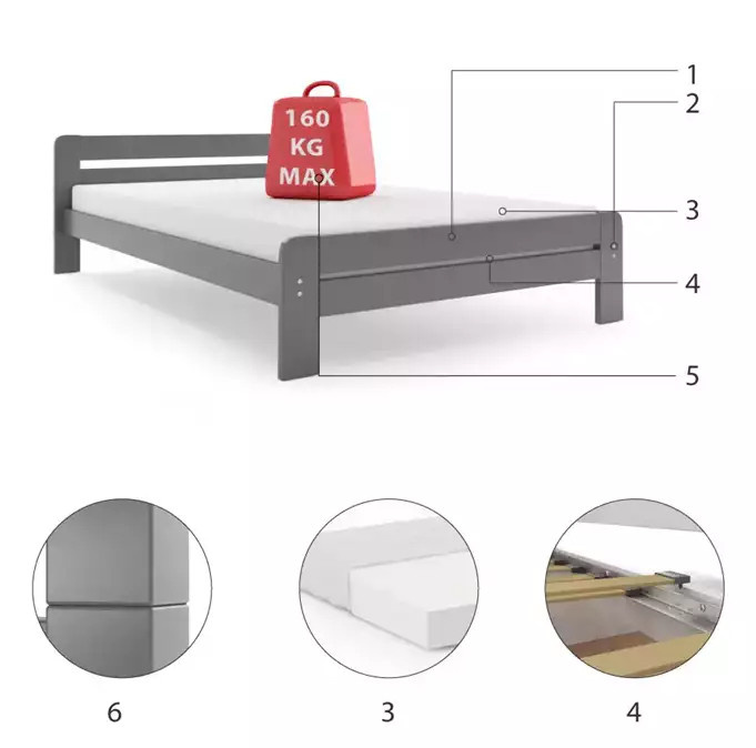 - Rama łóżka - wykonana z drewna sosnowego, pomalowana lakierem wodnym.