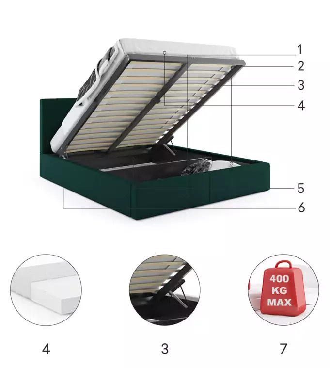 ŁÓŻKO SYPIALNIANE HILTON ZIELONY 140 X 200 KPL
