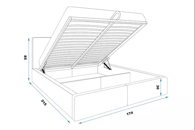 - Po podniesieniu stelaża przestrzeń jest przedzielona przegrodą. Tylna część przegrody nie posiada płyty, w przedniej znajduje się pojemnik na pościel.