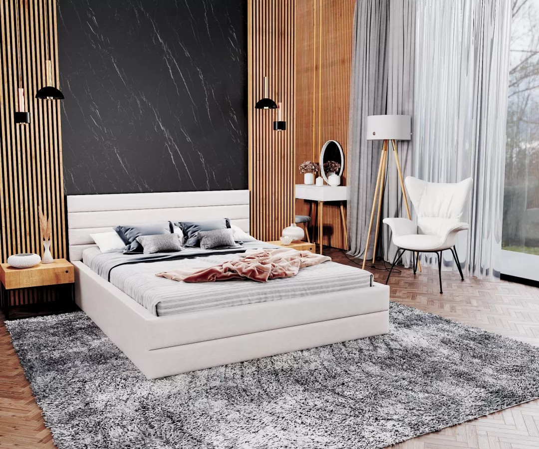 Łóżko tapicerowane VIRGINIA Sypialnia to miejsce, w którym każda spędzona chwila powinna dostarczać pozytywnych emocji. Musi się także dobrze prezentować i być użyteczna. Z łóżkiem tapicerowanym VIRGINIA jest to o tyle możliwe, że jego ponadczasowy design oraz duża funkcjonalność i atrakcyjne wykończenie sprawiają, że doskonale prezentuje się w pokoju sypialnianym. Każda spędzona na nim noc dostarcza wielu pozytywnych wrażeń, a samo łóżko cieszy oko. Oprócz tego jest bardzo praktyczne.