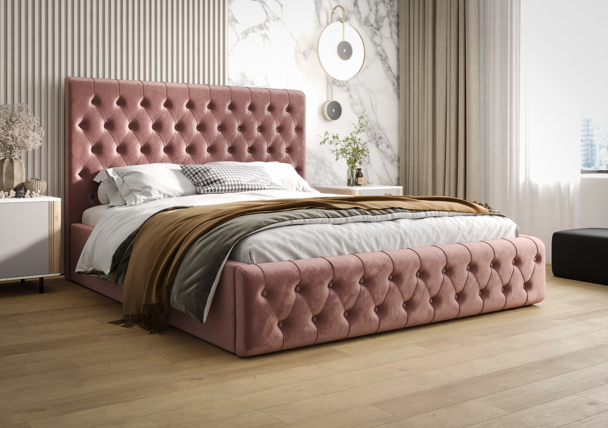Łóżko Valentino z pojemnikiem – elegancja, wygoda i funkcjonalność Łóżko Valentino z pojemnikiem to stylowy i praktyczny mebel, który łączy nowoczesny design z maksymalnym komfortem użytkowania. To idealny wybór do eleganckiej sypialni, w której liczy się zarówno estetyka, jak i funkcjonalność. Model charakteryzuje się solidnym wykonaniem i dbałością o każdy detal. W zależności od preferencji, łóżko może być wyposażone w stelaż drewniany lub metalowy – oba warianty zapewniają doskonałe podparcie dla materaca i trwałość na długie lata. Dodatkowym atutem jest pojemny schowek na pościel. To rozwiązanie, które pozwala na praktyczne przechowywanie pościeli, koców czy poduszek, a przy tym pomaga utrzymać porządek w sypialni. Pikowany zagłówek podkreśla wyjątkowość modelu Valentino, zapewniając wygodne oparcie podczas czytania lub relaksu przed snem. Odpowiednie miejsce do spania i odpoczynku to podstawa naszego dobrego samopoczucia. Według statystyk człowiek w ciągu całego życia przeznacza około 25 lat na sen. To wystarczający argument aby postawić na wygodę, styl i unikalność. Dlatego tak ważny jest prawidłowy i świadomy wybór właściwego dla nas łóżka i materaca. Zapomnij o nieprzespanych nocach i zapewnij sobie komfortowy sen, na który zasługujesz! Łóżko Valentino dostępne jest w czterech rozmiarach powierzchni spania - 140x200, 160x200, 180x200, 200x200. Przejdź do kategorii materacy i znajdź ten najbardziej odpowiedni dla siebie. W naszej ofercie znajdują się materace do spania o różnej twardości i z wieloma właściwościami wpływającymi na poprawę jakości snu. Dostępne tkaniny Kolekcję MCV stworzono w jakości Cleanaboo, z myślą o najwyższym komforcie użytkowania. Co to oznacza? Oznacza to więc, że zastosowano technologię polegającą na ograniczeniu wchłaniania wody. Technologia ta polega na tym, że każdy rozlany płyn formuje się w krople i nie wnika do wnętrza tkaniny. Ponadto kolekcja MCV charakteryzuje się właściwościami trudnopalnymi więc jest bardzo mile widziana w hotelach lub innych miejscach, w których istnieje ryzyko pożaru. Właściwości trudnopalne potwierdzone zostały atestem Instytutu Włókiennictwa w Łodzi, wydanym zgodnie z normą PN-EN 1021-1:2014-12. Certyfikat ten gwarantuje, że układ tapicerski odporny jest na tlenie oraz zapłon płomieniem, którego źródłem jest tlący się papieros – jedna z najczęstszych przyczyn pożarów w domach. Czyszczenie tkaniny odbywa się przy użyciu łagodnych środków do pielęgnacji tapicerki więc nie należy prać na mokro ani też wybielać. Skład: 100 % z poliester Test Martindale: ponad 60 000 cykli. Gramatura: 300 g / m2 +- 5% Szerokość: 142 cm +- 3 cm Przesunięcie w szwie: Kategoria A, Mechacenie i Pilling: Kategoria A. Meble do samodzielnego montażu. Wszystkie meble wykonywane są pod indywidualne zamówienie. Prosimy o przemyślane zakupy. Towar nie podlega zwrotowi.