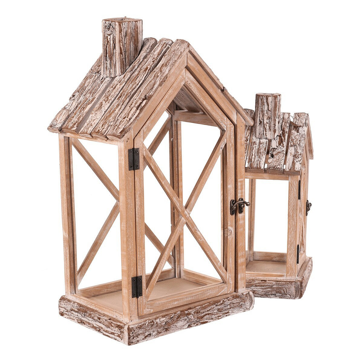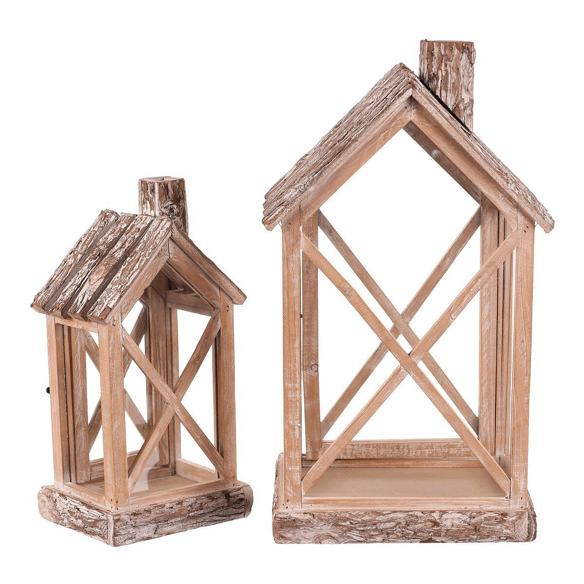 Dřevěná lucerna v sadě 2 velikostí ve tvaru domku s komínkem vnese do vašeho domova pohádkové zimní kouzlo. Přírodní barva dřeva s jeho jedinečnou texturou dodává lucerně jedinečný rustikální nádech. Po vložení svíčky tak vytvoříte neodolatelnou hru světla a stínů.