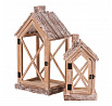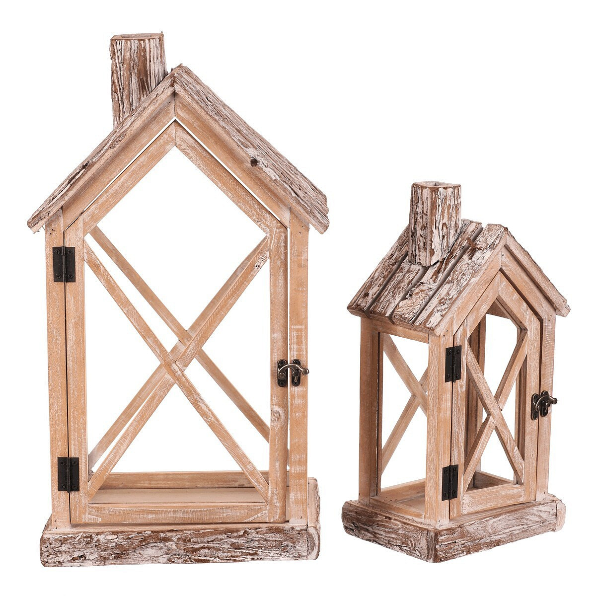 Lucerna dřevěná - tvar domku s komínem, cena za sadu 2 ks