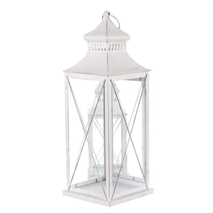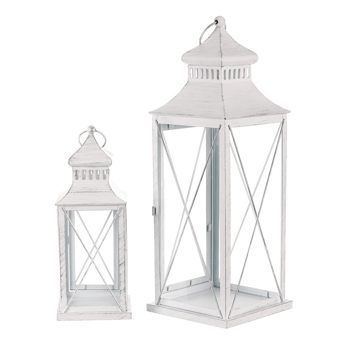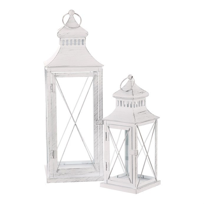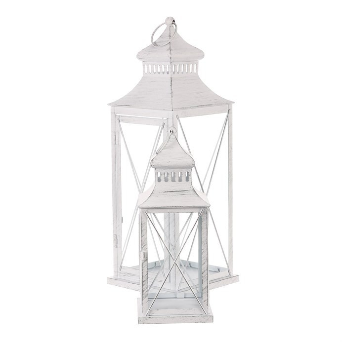 Lucerna kovová - čtyřboká, bílá, cena za sadu 2 ks