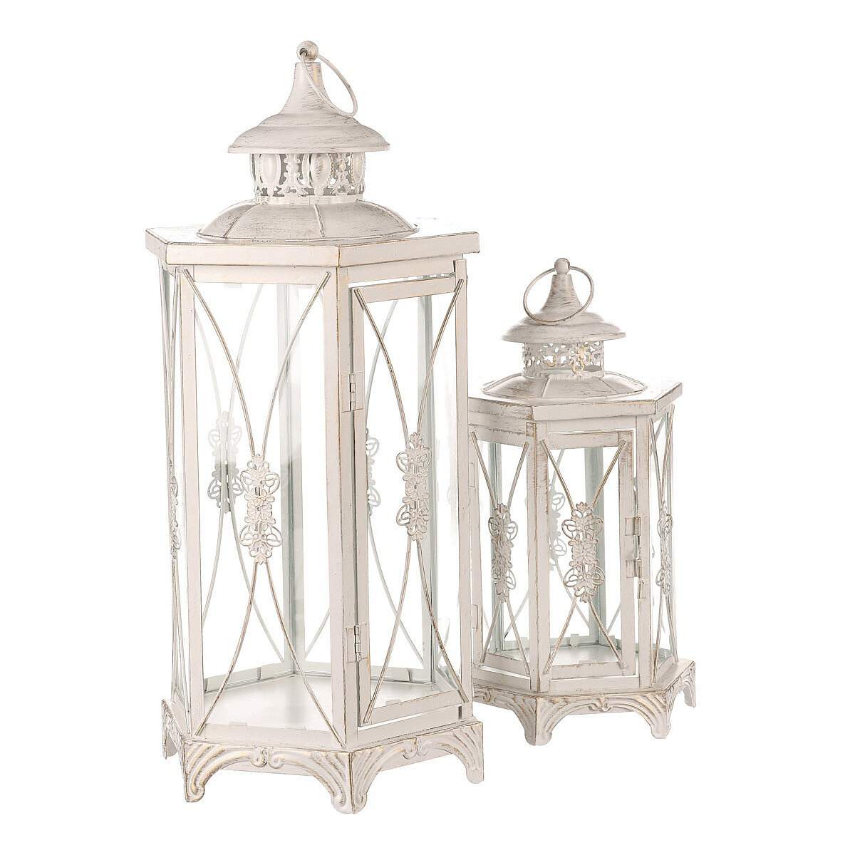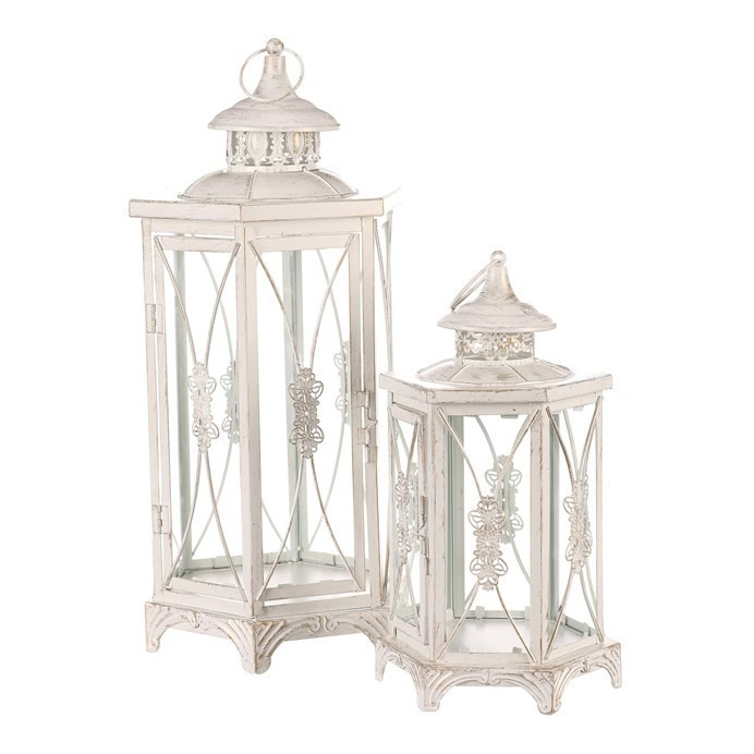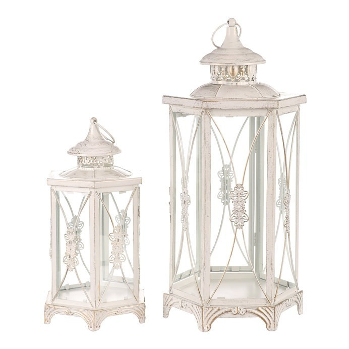 Lucerna kovová - šestiboká, bílá, cena za sadu 2 velikostí
