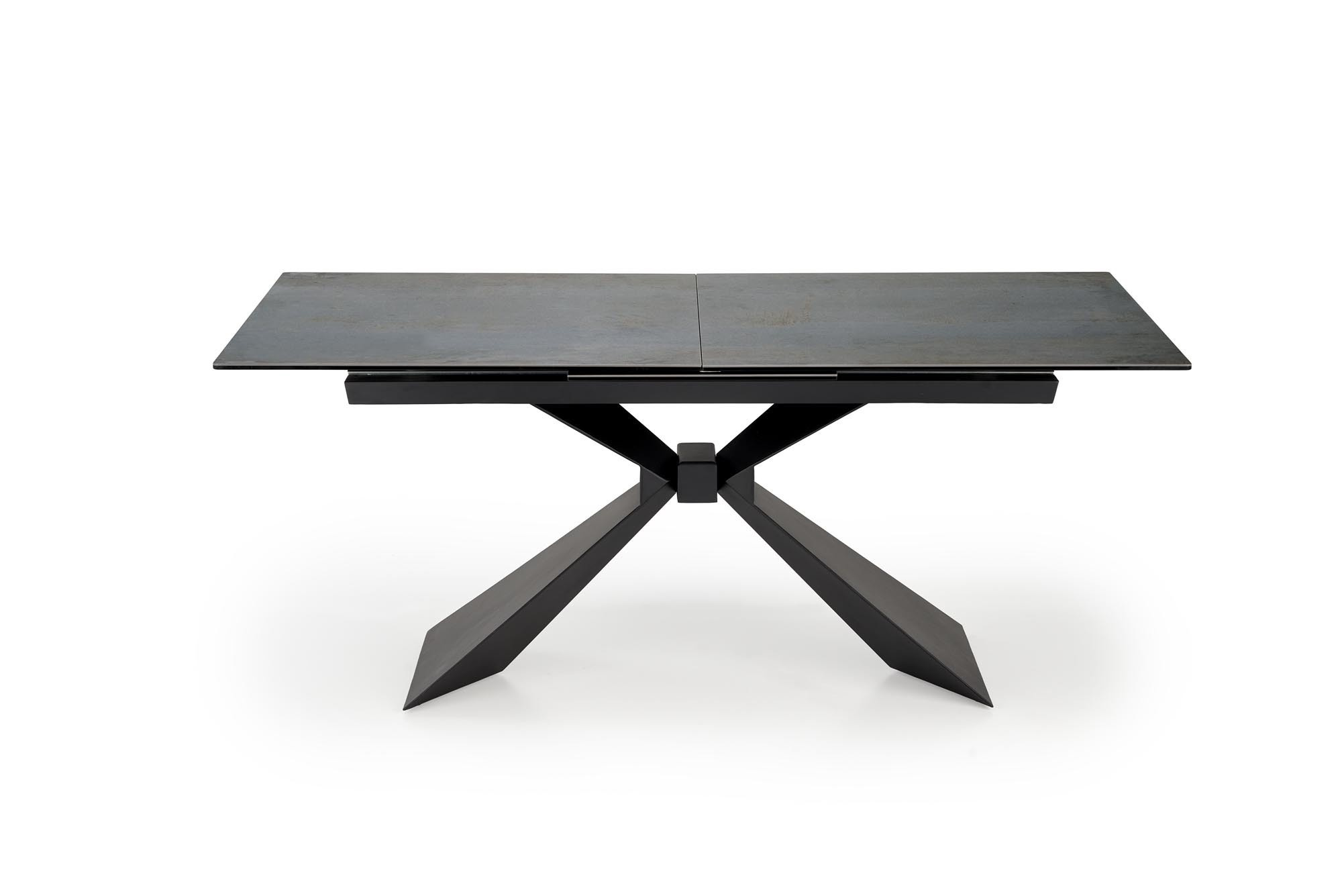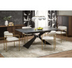 méretek: 180-230/90/76/117 cm; kinyitható asztal, anyag: kerámia / üveg / porszórt acél, szín: lap - kék márvány, lábak - fekete