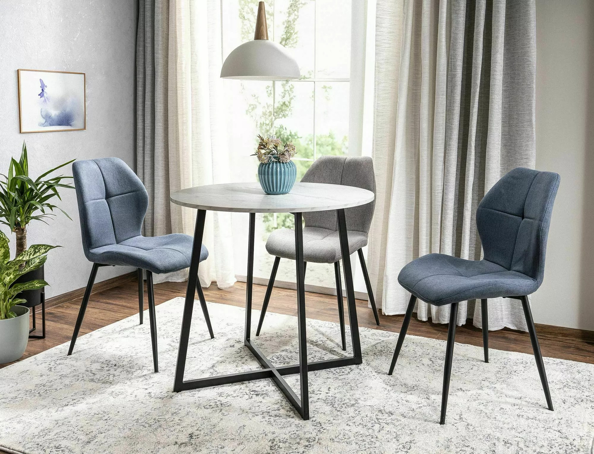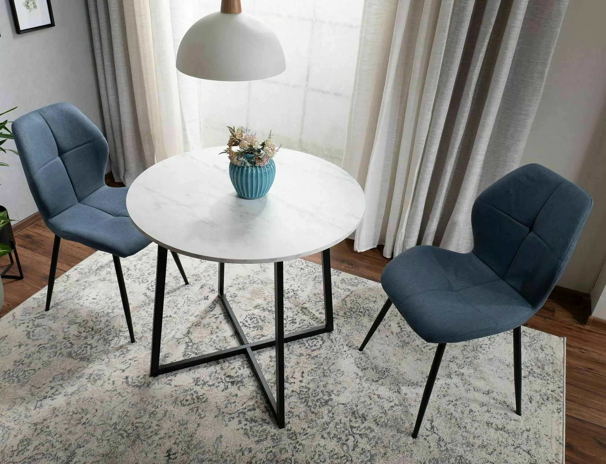LUNA étkezőasztal, Fehér márvány hatás/Fekete matt