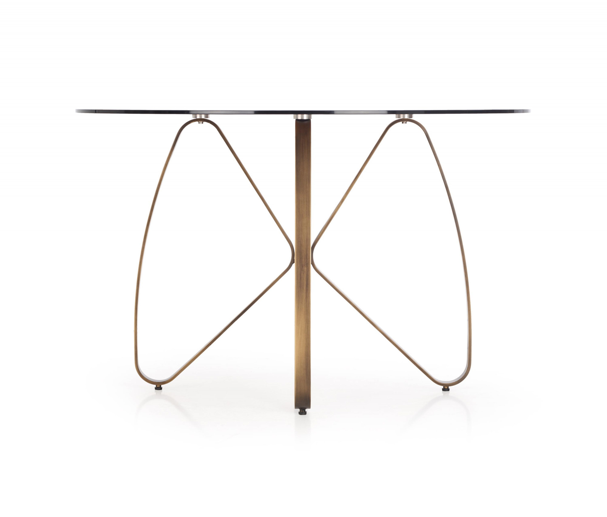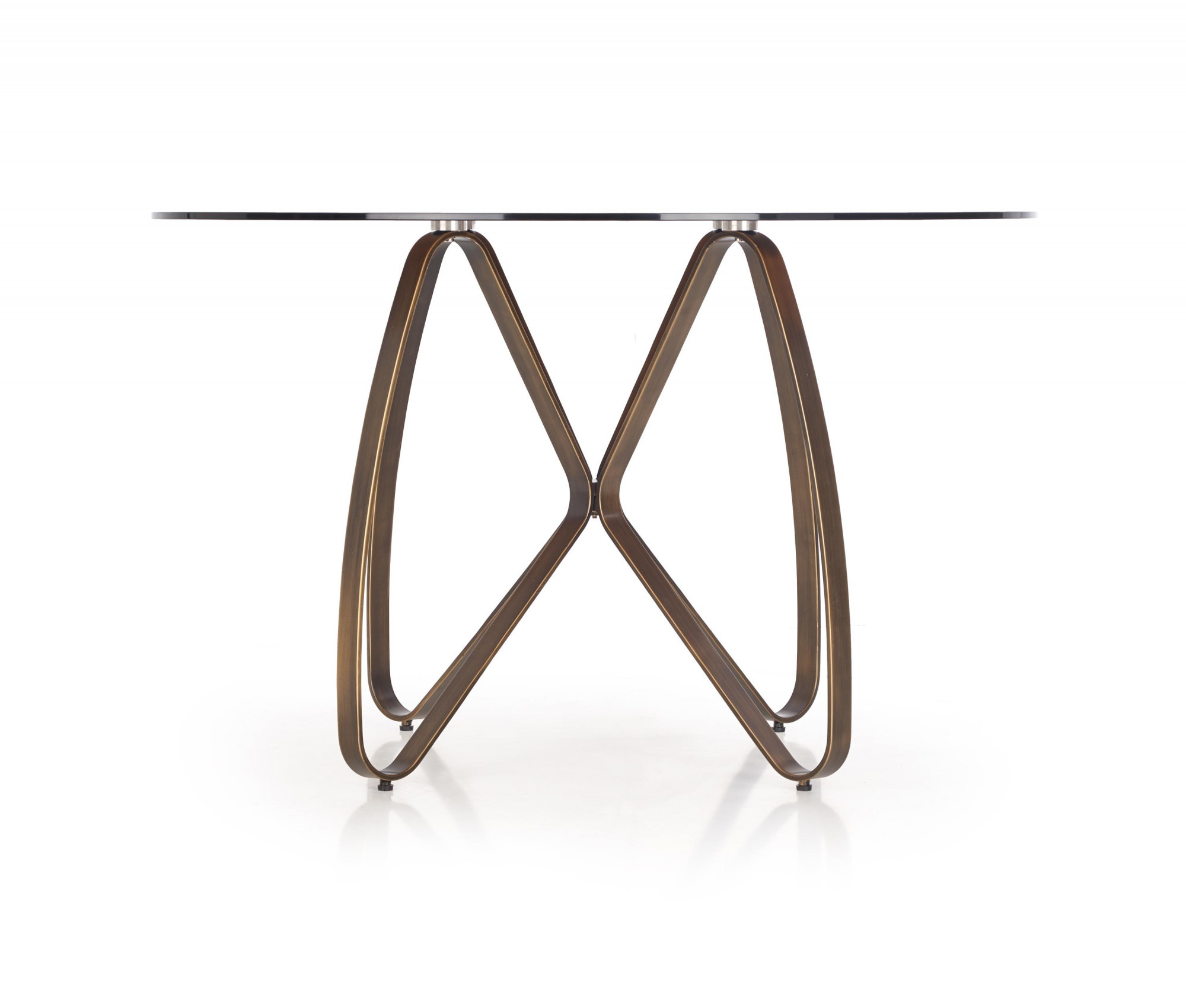 méretek: O120/76 cm, anyag: üveg / lakkozott acél, szín: asztallap - barna, lábak - óarany