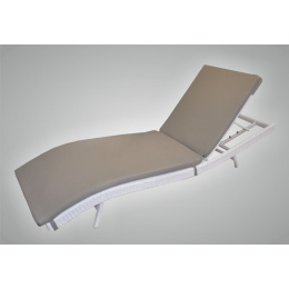 Luxusní zahradní lehátko z umělého ratanu s hliníkovou konstrukcí a voděodolným polstrem. | Zahradní lehátko je vhodné pro venkovní i vnitřní použití. Konstrukce lehátka je vyrobena z hliníku a odolává tedy povětrnostním vlivům a nerezaví. Lehátko je vyplétáno ručně z umělého ratanu nejvyšší kvality. Umělý ratan je odolný vlivům počasí i slunečnímu záření. Naše lehátka jsou vyrobena v Indonesii a jejich konstrukce je mnohem pevnější oproti výrobkům z Číny. Velikost lehátka je 210x71x37/92 cm. Nastavení opěradla umožňuje 3 polohy sklopení opěradla. Nosnost lehátka je 135 kg. Lehátko dodáváme včetně voděodolného polstru v šedé barvě.