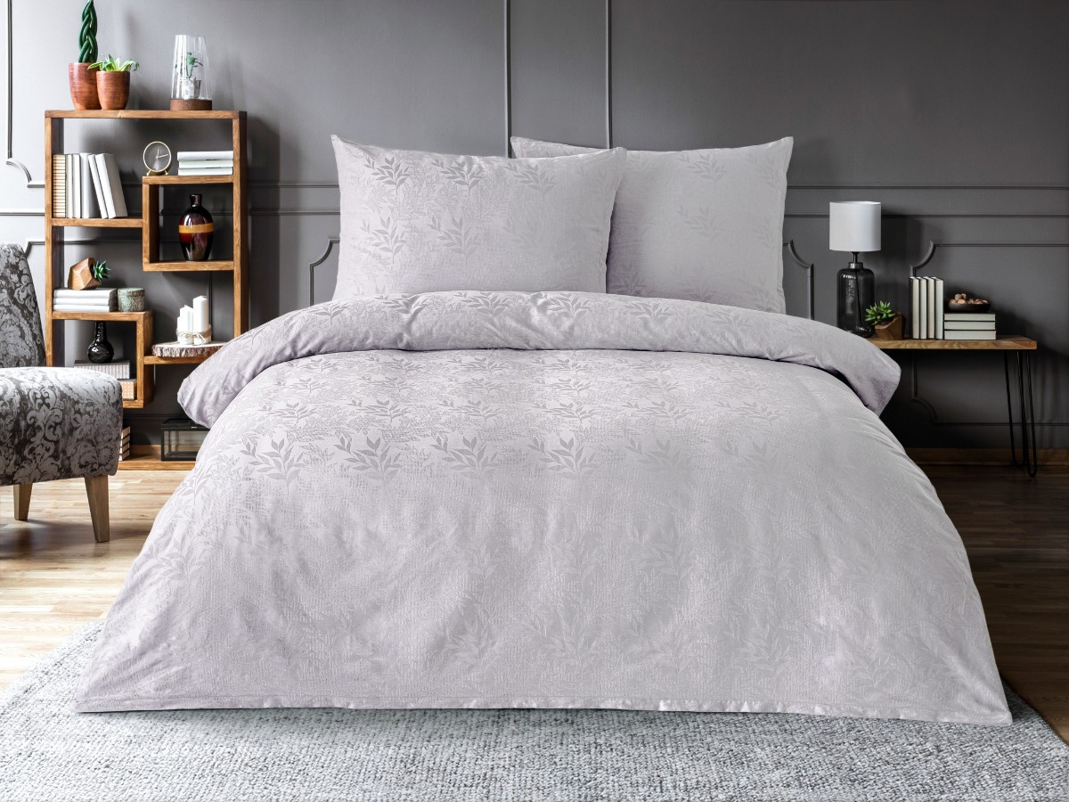 Luxusní žakárové povlečení 220x220, 70x90cm listy světle šedé