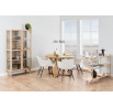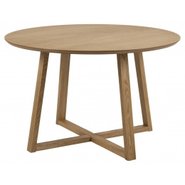 Malika asztala tölgyfából készült, természetes fa színű furnérral borítva. Van egy kerek asztallapja, amelynek átmérője 120 cm, és egy érdekes megjelenésű alapja, amely négy lábból áll, amelyeket két keresztező léc köt össze. Nekik köszönhetően az asztal nagyon stabil. A Malika asztal modern stílusú bútor, rendkívül minimalista. Alkalmas otthoni belső térbe és étterembe is. Kartondobozok száma: 1 Kartondobozok méretei: 126,5x126,5x8cm Kartondobozok súlya: 35,8kg