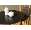 Az a fekete bárasztal valóban rendkívüli karakterrel rendelkezik. A kerek forma segít több helyet teremteni minden házban, de különösen a kevésbé tágasakban. A kontrasztos csíkokkal ellátott kerámialapnak és a karcsú, trombita alakú fém alapnak köszönhetően ez egyaránt praktikus és elbűvölő bútordarab. Főbb jellemzők: Stílusos bárasztal modern belső terekhez Kerek forma segít több teret teremteni A lap hő- és karcálló kerámiából készült Karcsú, trombita alakú fém alap biztosítja a vizuális könnyedséget Elegáns fekete színben tervezve Kartonok száma: 3 Kartonok méretei: 85x85x4cm, 8x8x10,5cm, 53x53x10cm Kartonok súlya: 19kg, 3,5kg, 8,5kg