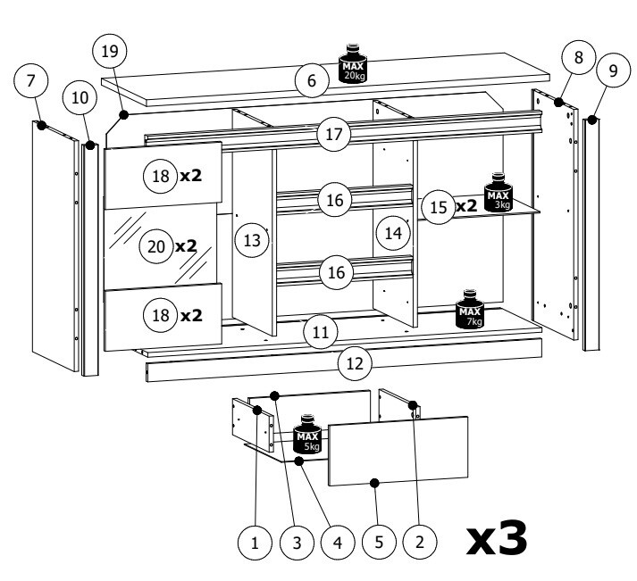 : A bútor szétszerelve kerül szállításra. A bútor része a szerelési terv, beleértve az összes szükséges kötőanyagot. Szükség esetén bútor összeszerelés rendelhető.