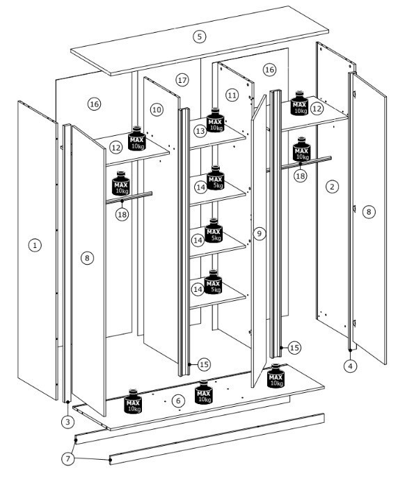 : A bútor szétszerelve kerül szállításra. A bútor része a szerelési terv, beleértve az összes szükséges kötőanyagot. Szükség esetén bútor összeszerelés rendelhető.