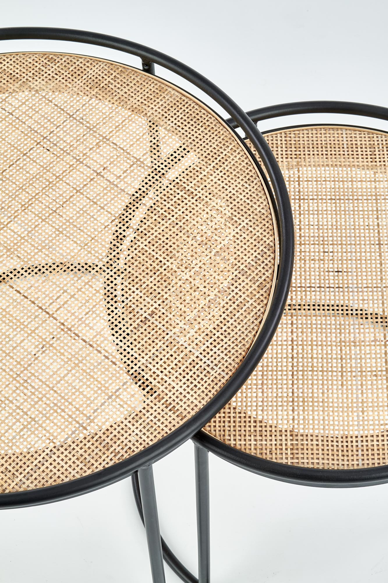 Méretek: 51/42, 41/37 cm, Anyag: természetes rattan / porszórt acél, Szín: természetes - fekete