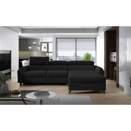 Mariall is a classic, yet comfortable and chic L-shaped corner sofa, measuring 300 x 190 x 98 cm. Its distinguishing features include: adjustable headrests, upholstered back of the sofa, elegant metal legs with wooden finish and deep, soft seat made of innovative T30 and HR foam, which are resistant to deformation and damage. In addition, they guarantee maximum comfort both during daytime relaxation and while sleeping. Due to its sleeping function, Mariall is a multifunctional piece of furniture. After unfolding the sofa using the intuitive and uncomplicated dolphin mechanism, we get a spacious bed of 110 x 240 cm, as well as a capacious, deep bedding compartment located in the ottoman. If you are looking for a functional, yet classic and elegant piece of furniture - there can be only one choice - with a clear conscience we recommend the Mariall corner sofa, which is the answer to all questions.