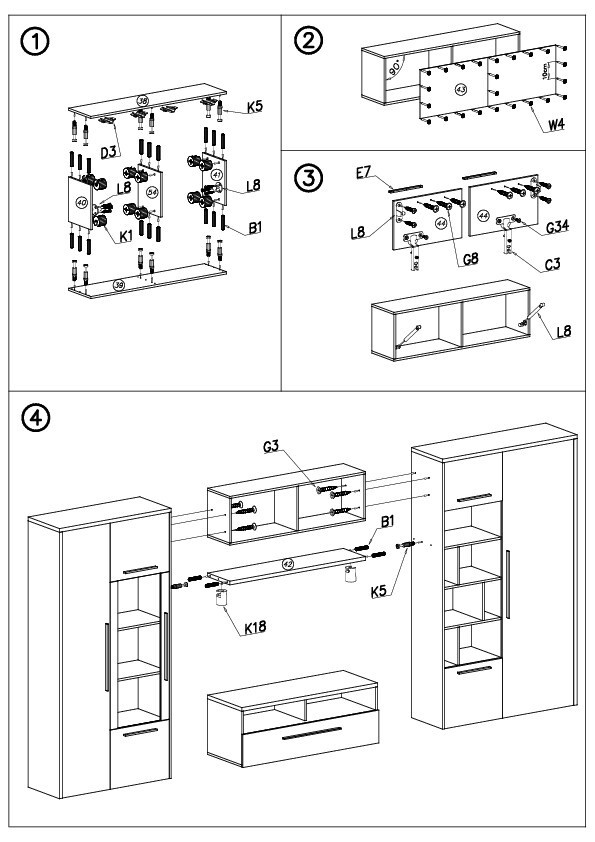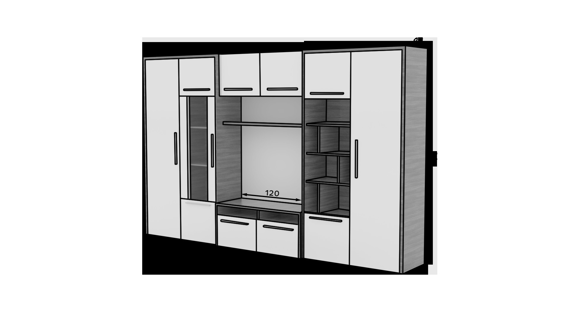 A MARIO nappali fal rendkívül funkcionális bútordarab. A nappali fal részét képezi két szekrény, egy praktikus polc, amelyre elhelyezheti kedvenc könyveit vagy közeli hozzátartozói fényképeit, egy tágas vitrin, egy TV szekrény és egy fali polc. A MARIO nappali falnak tágas szekrényei és nagy polcai vannak, ami ideális helyet biztosít a kisebb tárgyak elrendezéséhez.