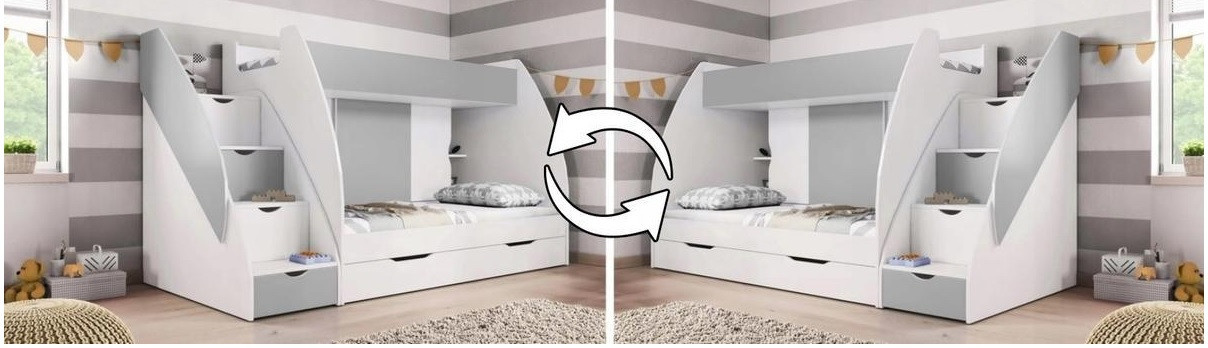 - Univerzális ágyoldal - A lépcsők jobb vagy bal oldalra is szerelhetők