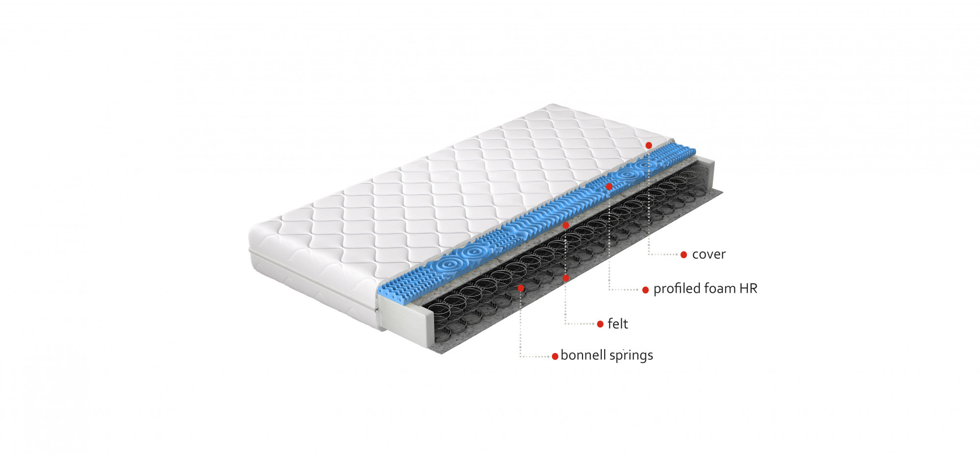 We spend 1/3 of our lives in bed therefore we know the importance of a comfortable sleep. A perfect rest starts with choosing a good mattress for sleeping. The use of bonell springs in the Olivia mattress makes the mattress springy and does not collapse. An additional layer of felt and molded high-flexible HR foam is a certainty that we have before us a mattress that is not only comfortable, but also durable. All this encased in a removable cover.