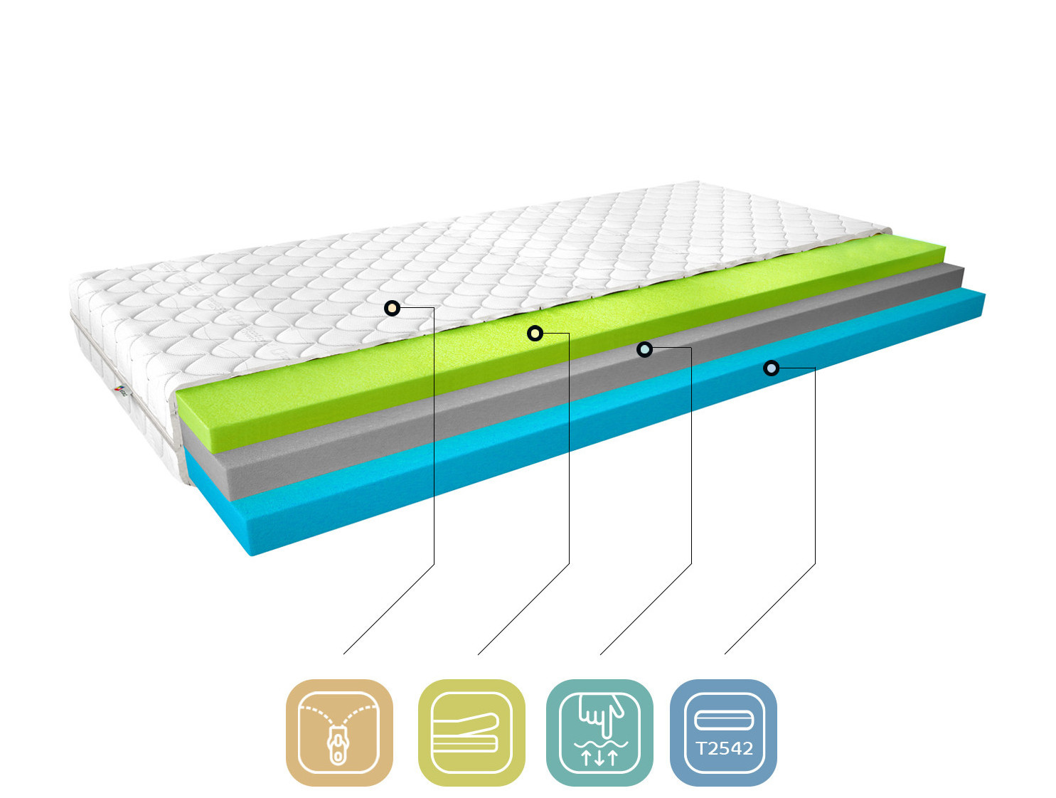 The Simona mattress is a product made of the highest quality materials, ideal for people who value excellent quality sleep. Thanks to the use of three foams, it is an extremely comfortable mattress. Highly elastic HR foam is surrounded by Visco foam on one side, which is extremely soft, and T2542 foam on the other. The Simona thermoelastic mattress is covered with a removable cashmere cover.