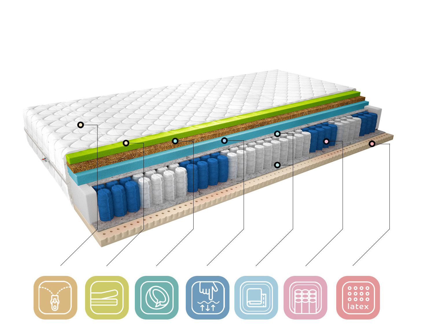 A comfortable night's sleep is a recipe for a successful day, so we realize how important it is to choose the perfect mattress for your preferences. The Sola thermoelastic mattress in a silver cover is an ideal choice for people who value a good night's sleep. The Sola mattress consists of a pocket spring, which makes the mattress does not ripple or vibrate, and three types of foam. Latex foam on one side and highly flexible HR foam and Visco foam on the other, separated by a coconut board that increases the hardness of the mattress, the whole is complemented by a removable silver cover.