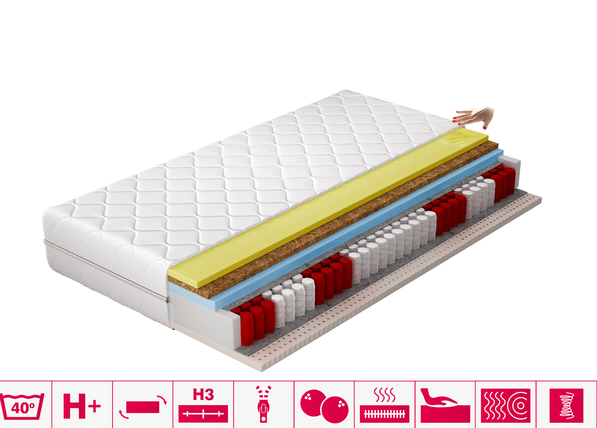 A comfortable night's sleep is a recipe for a successful day, so we realize the importance of choosing the perfect mattress for your preferences. The Sola thermoelastic mattress is an ideal choice for people who appreciate a good night's sleep. The Sola mattress consists of a pocket spring, which makes the mattress does not ripple or vibrate, and three types of foam. Latex foam on one side and highly flexible HR foam and Visco foam on the other, separated by a coconut plate, which increases the hardness of the mattress, the whole is completed by a removable cover.