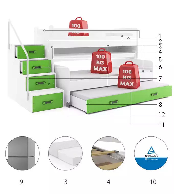 - Certyfikowane łóżko - jakość i bezpieczeństwo zgodnie z normami TUV.