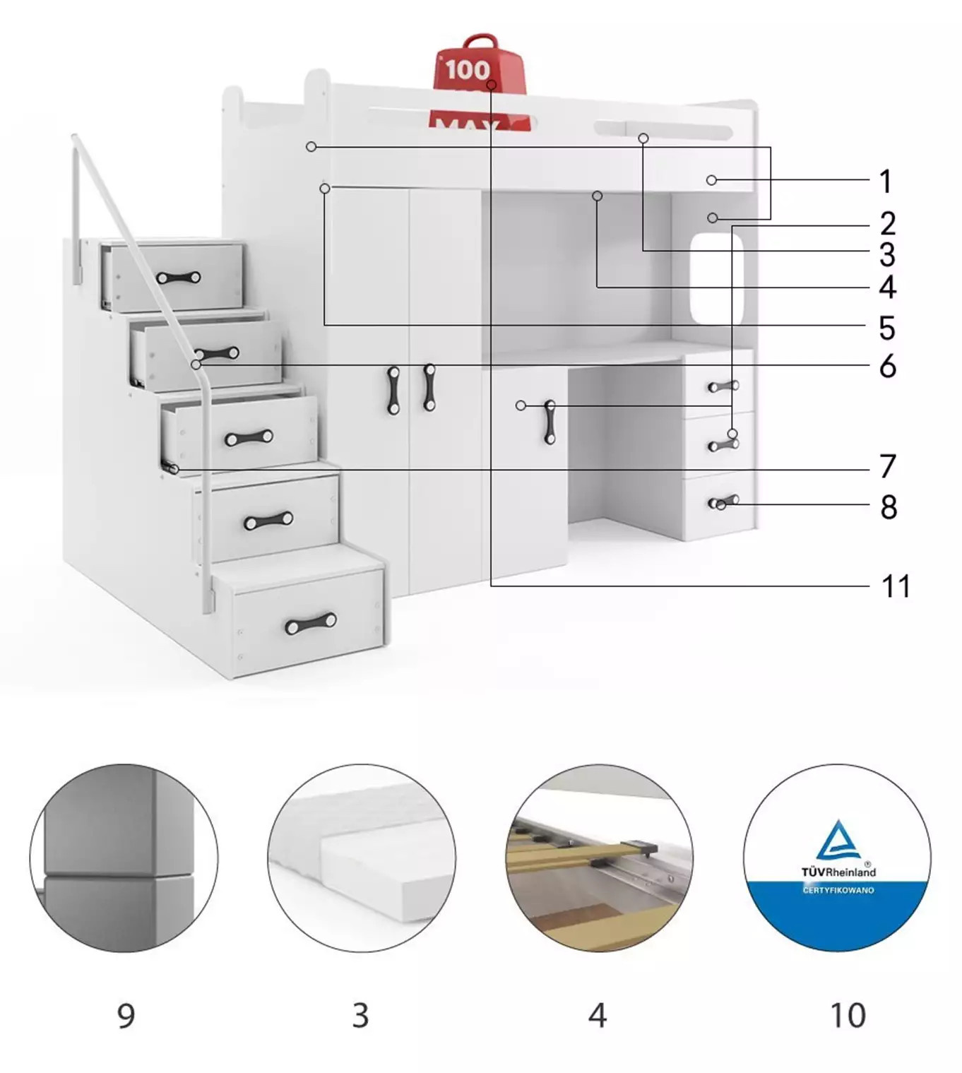 - Certyfikowane łóżko - jakość i bezpieczeństwo zgodnie z normami TUV.
