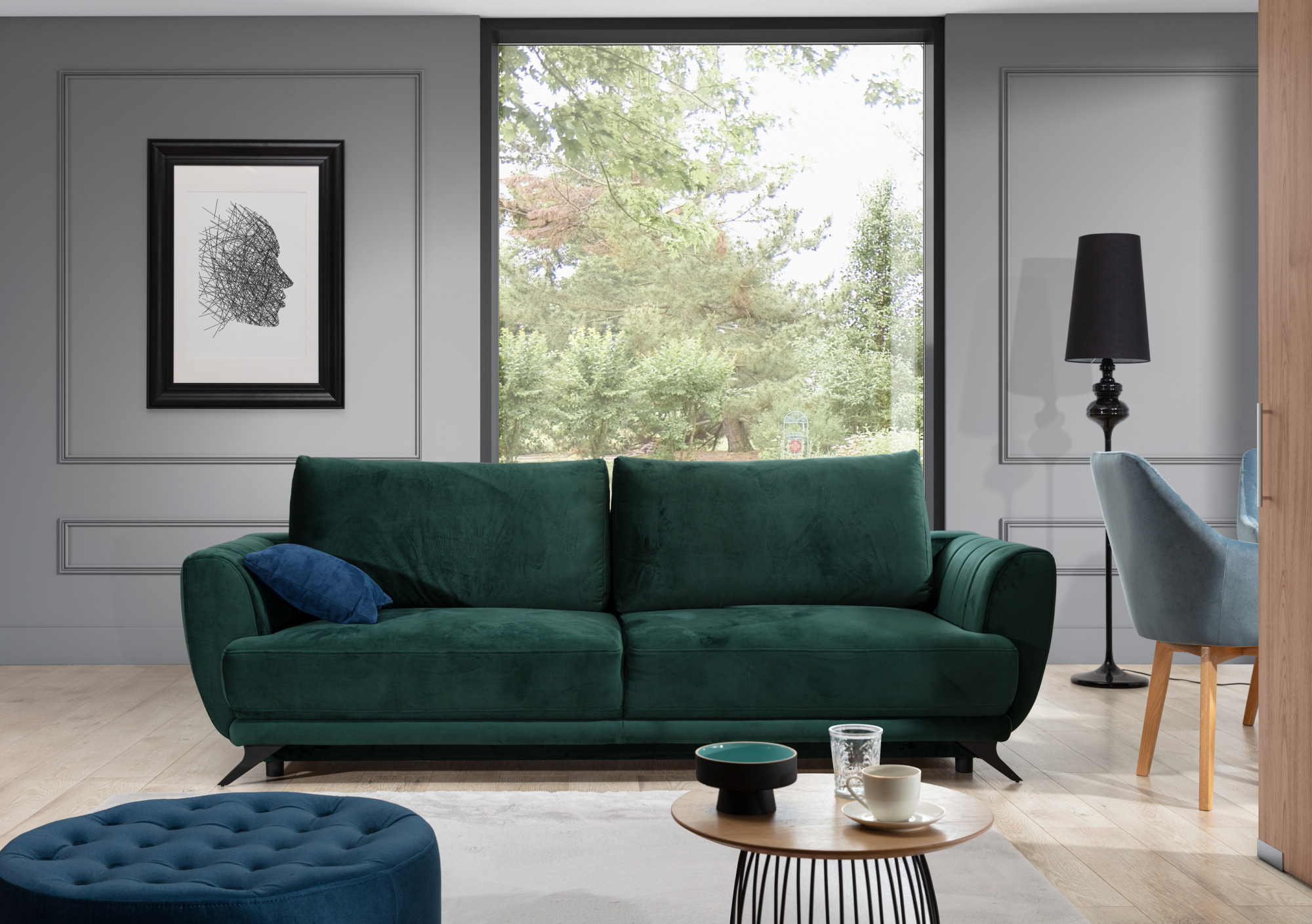 Megis is a spacious, stylish sofa with dimensions of 250 x 95 x 90 cm, which is created for fans of minimalism. It is ideal for relaxing during the day, as well as at night, because after unfolding with the DL mechanism, it can take the form of a 200 x 145 cm bed. It is also worth mentioning here the spacious bedding container located in the box. Thanks to the use of HR foam, as well as B-type corrugated springs - the Megis sofa does not deform, making it an ideal solution for the living room for years to come. Additional advantages of this model we can include spacious cushions, high, as high as 13 centimeter legs, contoured backrest, comfortable armrests, soft seat and a wide range of possible color variants. Megis is a minimalist piece of furniture that meets maximum requirements, so it is worth having!