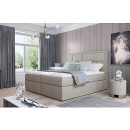Meron is a tasteful, elegant, perfectly soft and comfortable boxspring continental bed in modern classic style, which is available in three sizes: 140/ 160/ 180 x 200 cm. The exceptional comfort is enhanced by the high 53 centimeter seat and filling of the bed. The bonell mattress and T25 foam gives the user of the furniture the highest comfort and perfectly stabilizes the position of the body during rest. Such a solution guarantees a comfortable rest for everyone, because, after all, a healthy sleep is a good sleep! In addition to the considerable comfort, it is also worth noting the finish of the individual elements of the Meron model. The high headrest, stitched into the shape of irregular rectangles, is both a soft, comfortable and invaluable support, as well as an interesting decoration of the bedroom. Thanks to two spacious bedding containers - our boxspring is not only a functional accessory for the apartment, but also its own oasis of peace, making the use of such a bed - a real pleasure. It is worth having such a bed as Meron in your apartment - satisfaction guaranteed.