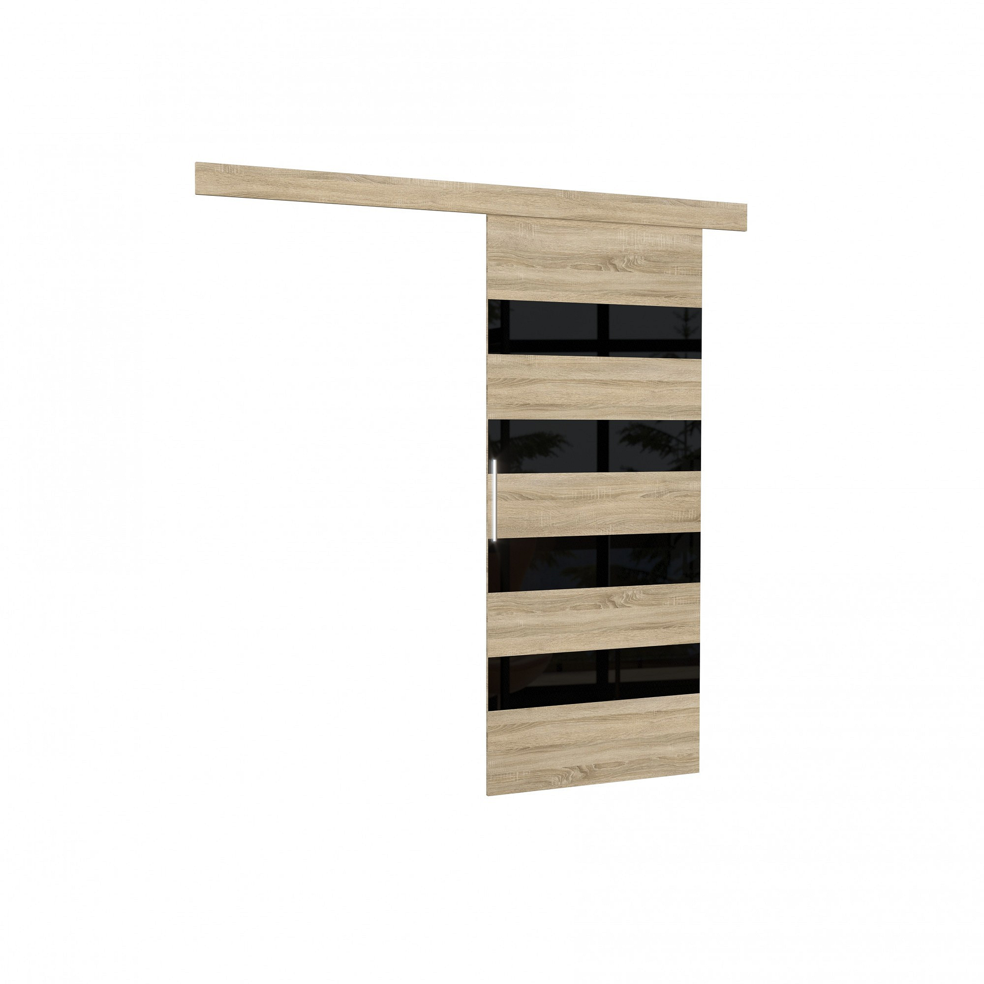 MILOU 86 tolóajtó falra Sonoma+Fekete Lacobel